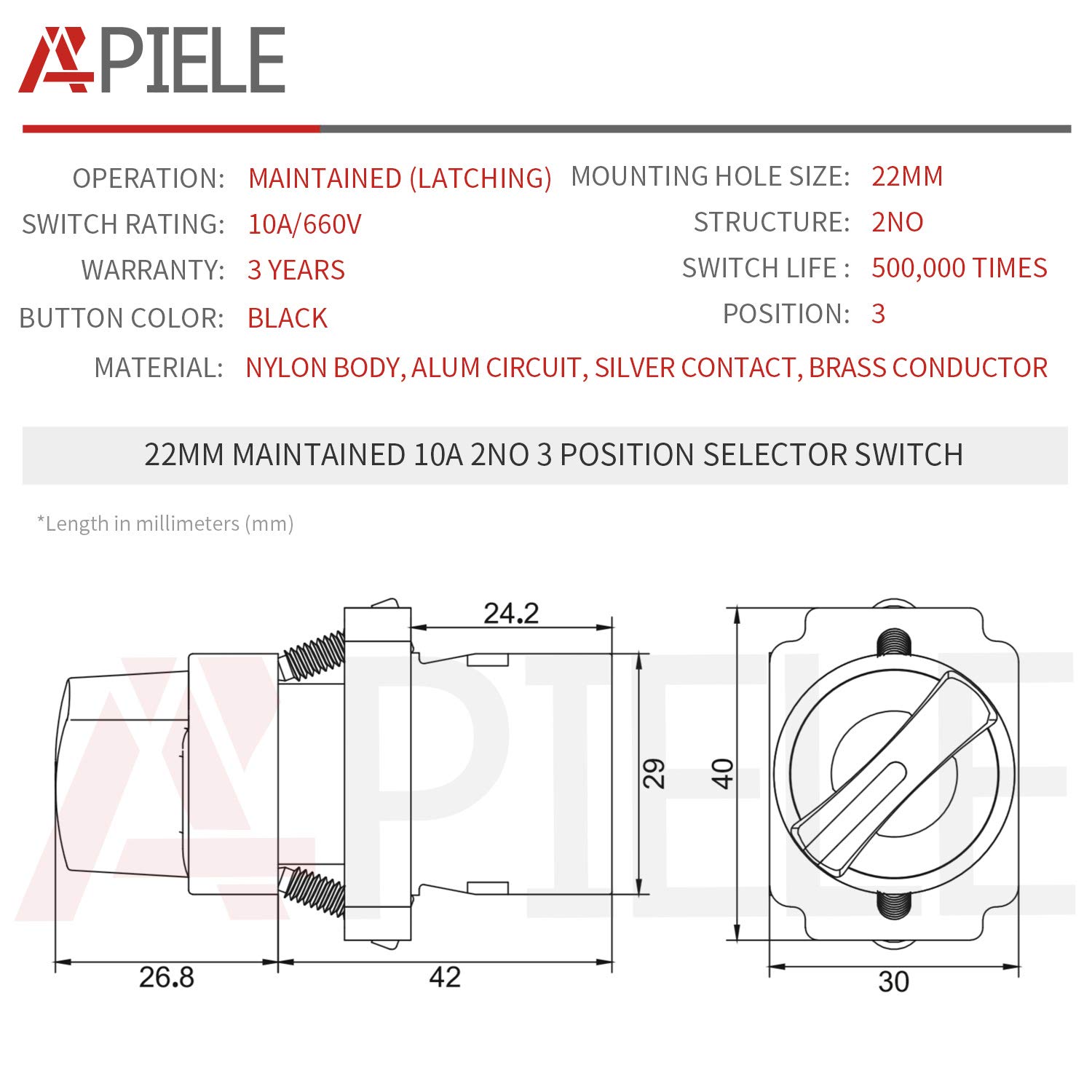 Product name: Brand New 22mm Metal Head 3 Position Selector Switch ( 2pcs)
