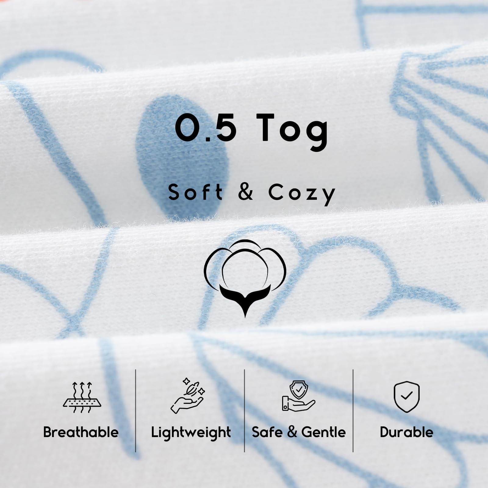 Lightweight 0.5 Tog :The baby sleep sack 0.5 Tog is suitable for moderate temperatures from 75 to 80°F as an ideal option for spring, summer, autumn or taking a nap in air-conditioned rooms.We insist on quality control of baby wearable blanket, it can be withstand millions of washes and achieve a shrinkage rate of less than 2% after machine washing and dry on low heat (<30°C/86°F).