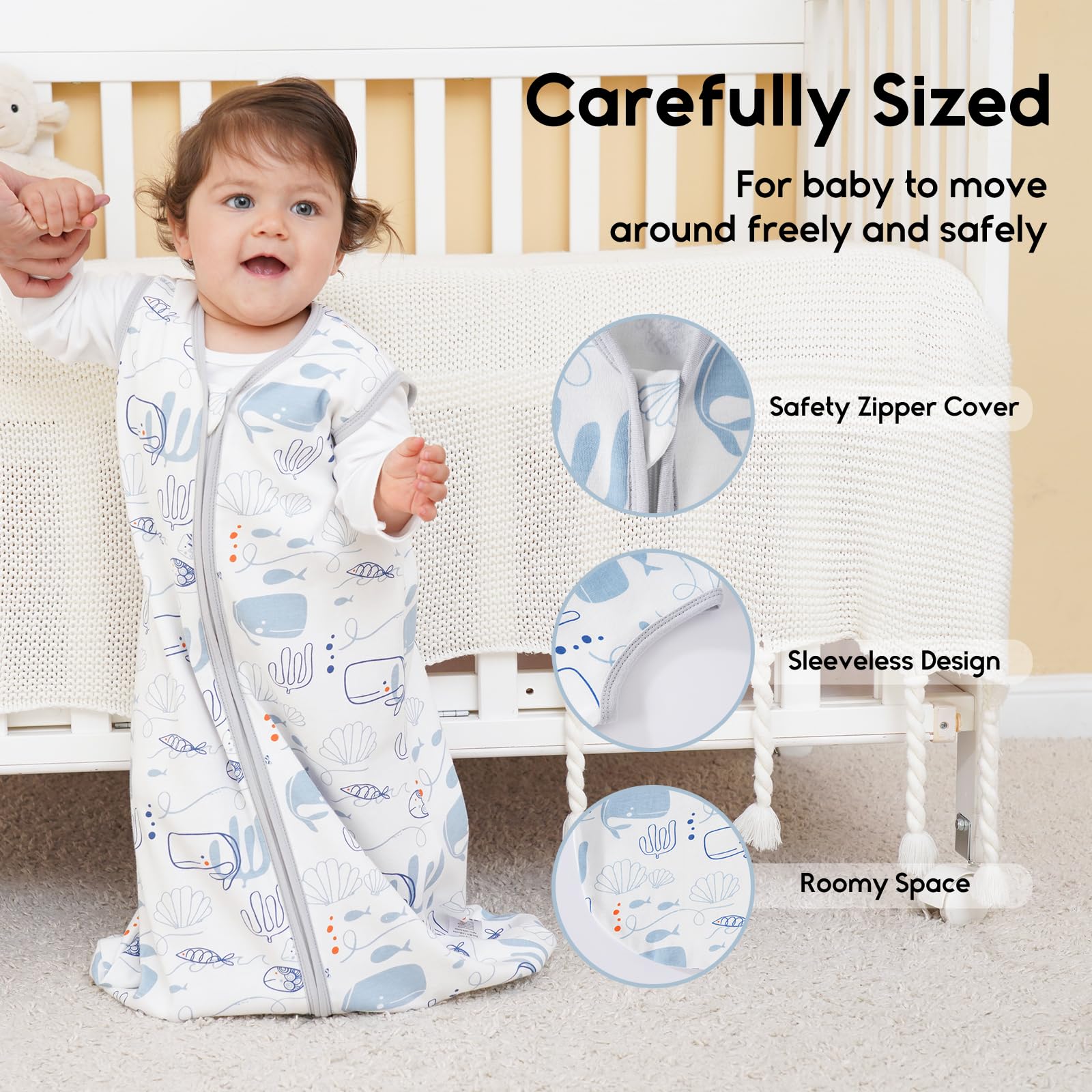 100% Organic Cotton Comfort - This baby sleep sack made with 100% Organic Cotton, super soft and breathable for comfort. The sleeveless design helps regulate baby's temperature, reducing overheating risk and ensuring warmth and cozy.