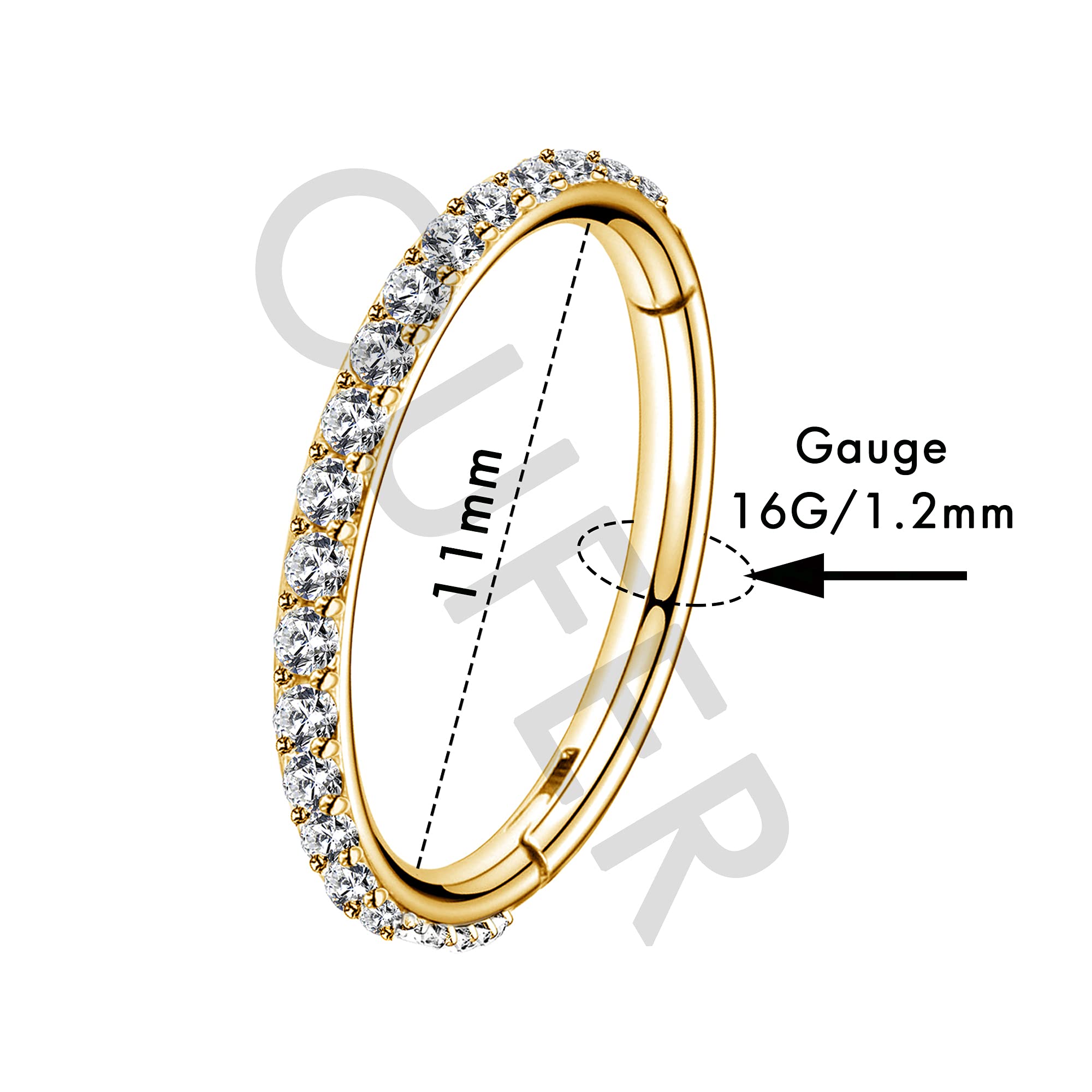 ❤SHINY STYLE❤:1PC gold plated with shiny clear CZ paved hinged segment cartilage earring hoop ,more than 11 clear CZ paved,makes it more shiny and charming on your ear or nose .