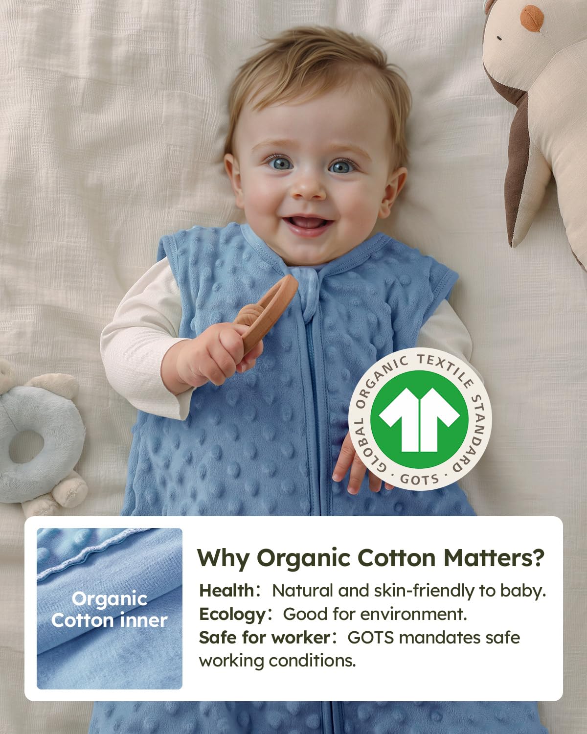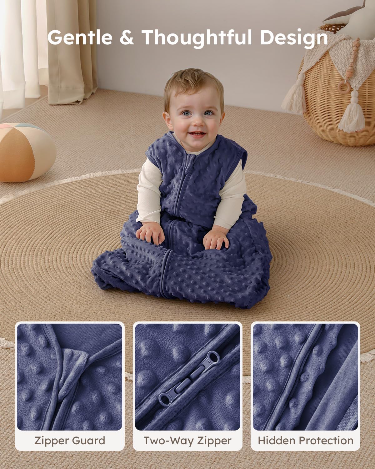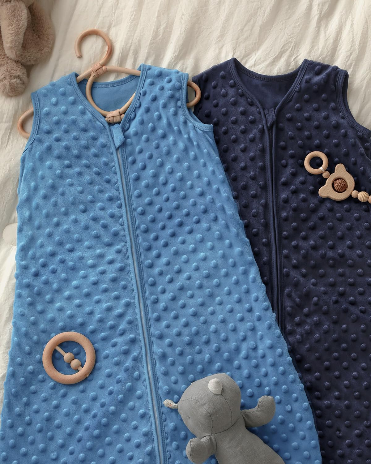 Healthy development - It's plush heart dots surface helps baby fall back to sleep quickly, transform the sleep sacks into an invaluable ally for moms, aiding in lulling their precious ones to sleep while fostering infants'cognitive development. Our baby sleeping sack provides ample room for kicking freely, ensuring your baby stays comfortable throughout the night while promoting healthy hip development.