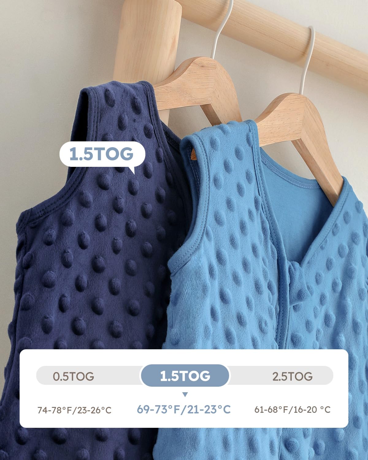 Softness and Warmth - Yoofoss baby sleep sacks made with 2 layers, plush fabric and 100% cotton Lining, super soft and smooth, ensure baby's warmth and a cozy embrace. 1.5 TOG sleep sack is suiable for moderate temperatures from 69 to 73°F as an ideal option for autumn,early winter and spring or taking a nap in air-conditioned rooms during the summer, keeping your baby snug and warm.