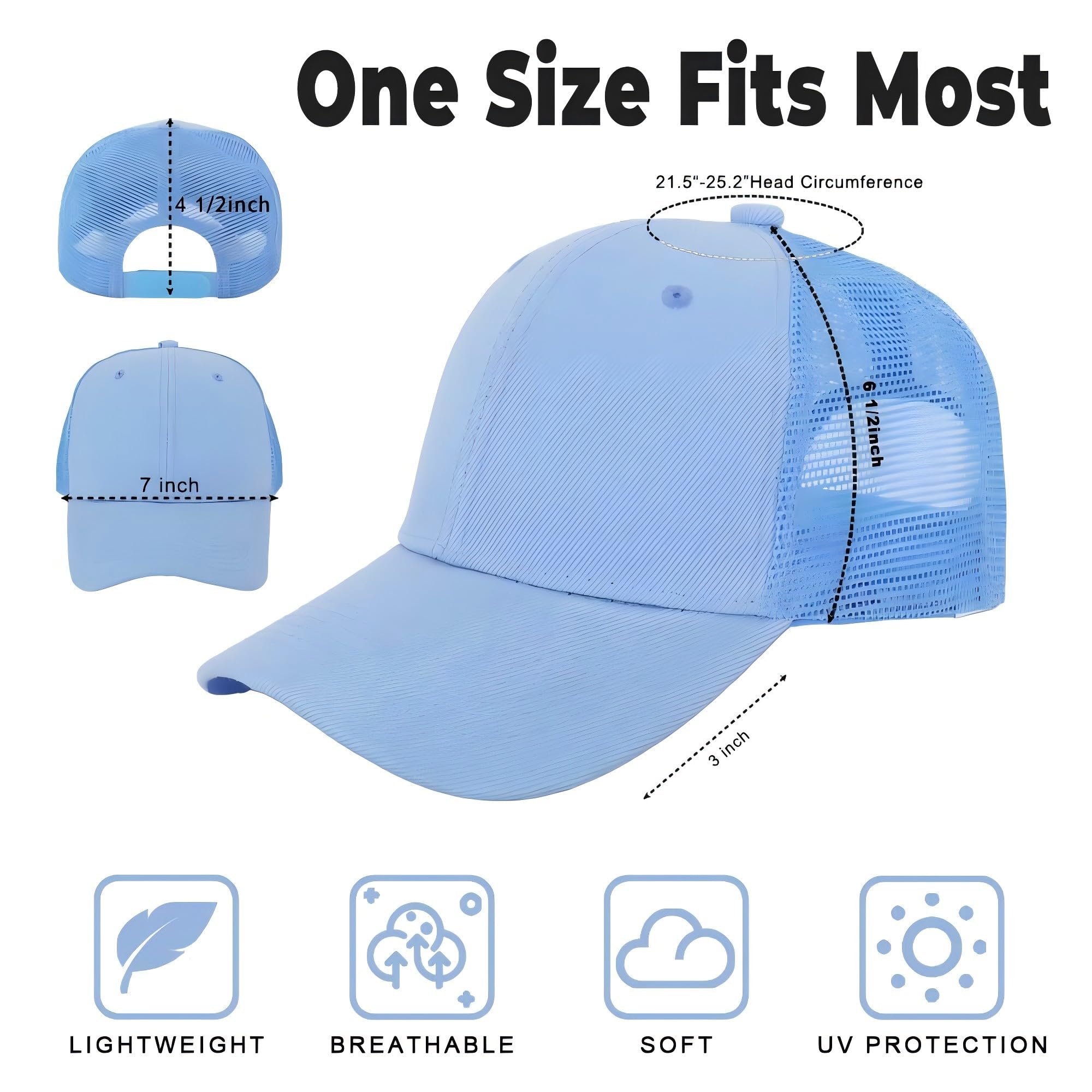 [Comfortable & Lightweight ]: Made from a durable blend of polyester and mesh fabric, our hats are lightweight and comfortable. The front panel and breathable mesh back ensure excellent ventilation , while the brim offers UV protection, making them ideal for outdoor activities.