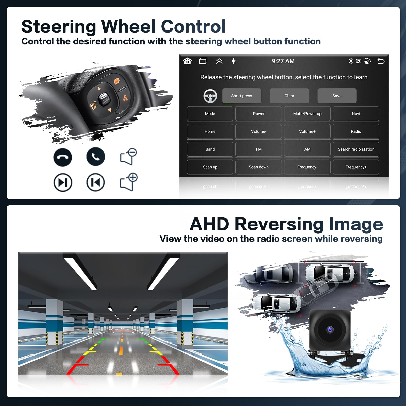 AHD Backup Camera & Steering Learn: Inefala for toyota hilux android auto is equipped with an AHD camera, and when connected to the rear camera, you can see video on the radio screen through the rearview camera when reversing. For toyota fortuner display also supports the steering wheel button function, through which you can control the desired functions
