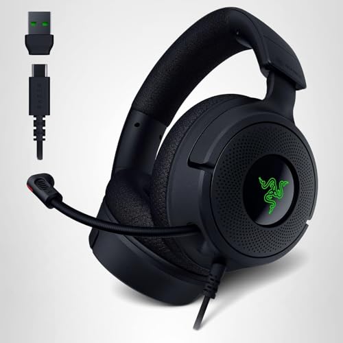 Dive into a vivid spectrum of sound with the Razer Kraken V4 X. Razer’s patented TriForce 40mm Drivers pushes out exceptional highs, mids and lows that doesn’t muddy, providing a more dynamic listening experience for deeper immersion. The Retractable Razer HyperClear Super Cardioid Microphone’s improved pickup pattern ensures more voice and less noise, while its retractable design allows for optimal positioning or protection when not in use. With advanced 7.1 Surround Sound, enjoy true-to-life acoustics that optimizes your game’s sound design so you can hear everything as if you were right in the middle of it all. Hybrid Fabric and Leatherette Memory Foam Ear Cushions provide all-day comfort and noise isolation, allowing you to game for hours in complete, uninterrupted immersion. A convertible USB Type C to A adapter offers multi-platform versatility to connect the headset to your favorite systems and devices like your PC, Mac, PlayStation, Nintendo Switch, Steam Deck, ROG Ally, and Smartphone. Powered by Razer Chroma RGB, enjoy access to 16.8 million colors and a suite of lighting effects, apply your preferred settings and watch it work seamlessly with over 300 games and 500 devices across more than 50 partners. Take your gaming to new heights of immersion with the Kraken V4 X.