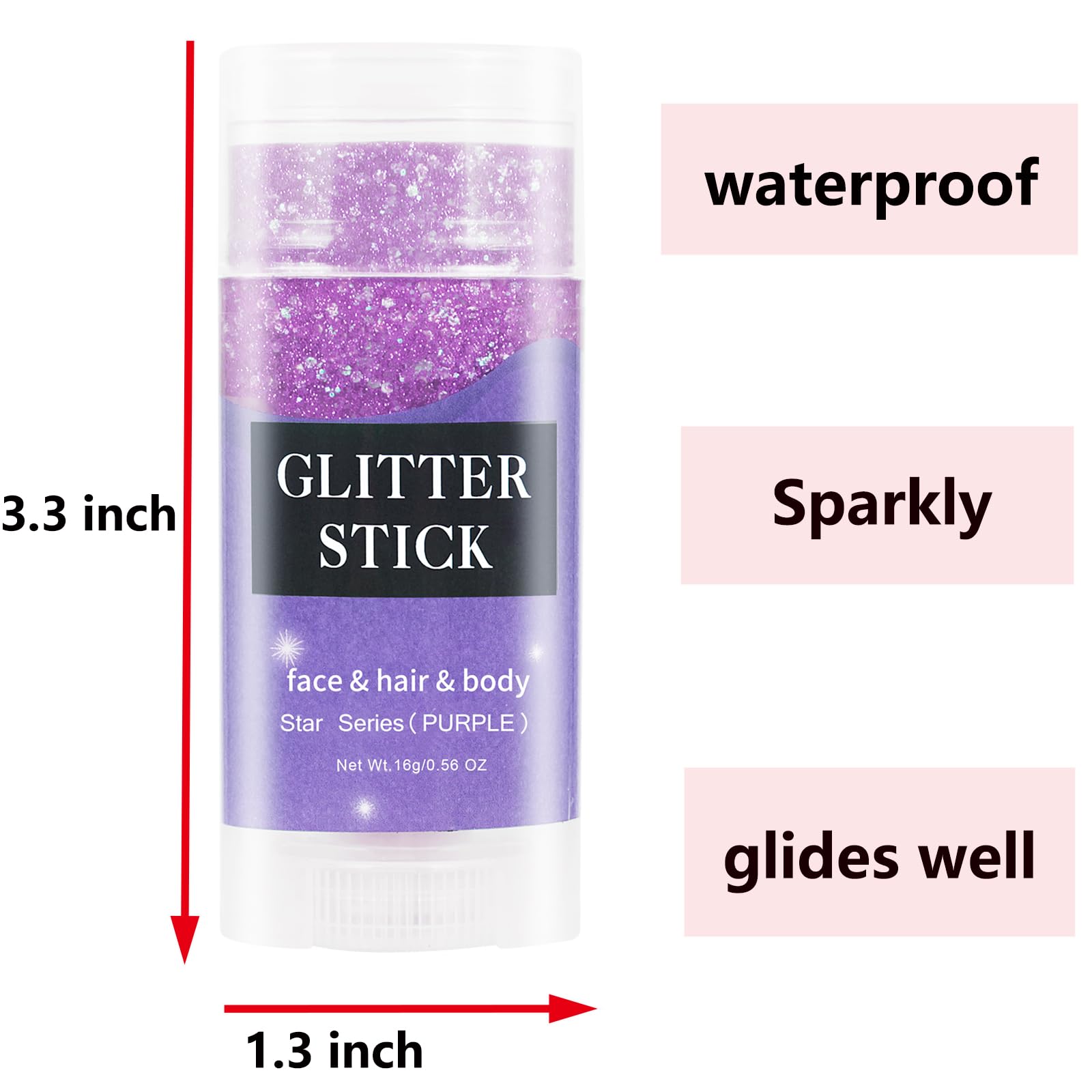 🌟Multiple Use:The purple hair glitter stick can be used on your face, body, hair,eyes,great for Mardi Gras,Music Festival Rave Accessories,Sexy Singer Concerts,children party,rave festival,school color party,Christmas makeup,Halloween makeup or other glittery needs,also great to used for mermaid makeup