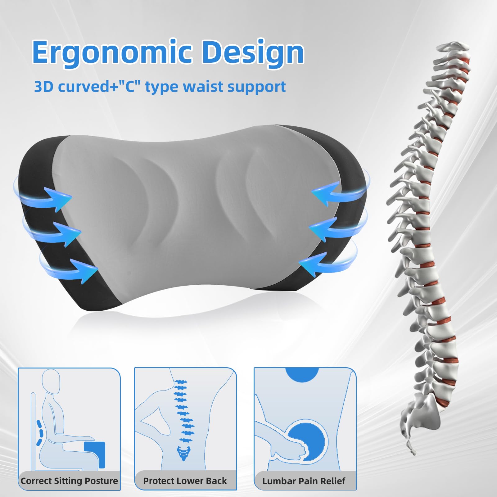 Experience Comfort and Breathability: Our lumbar support for car features memory foam that contours to your spine, delivering exceptional cushioning whether you’re sitting or reclining
