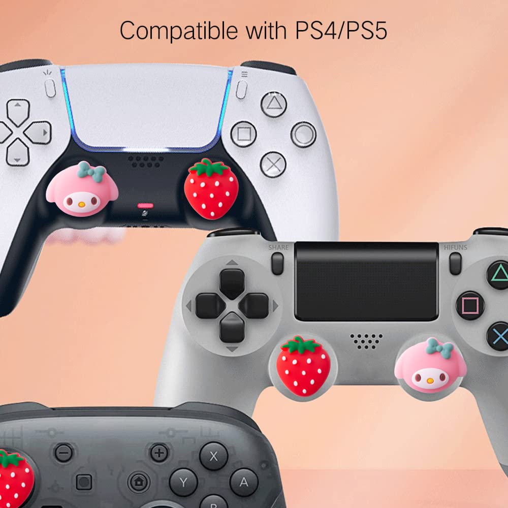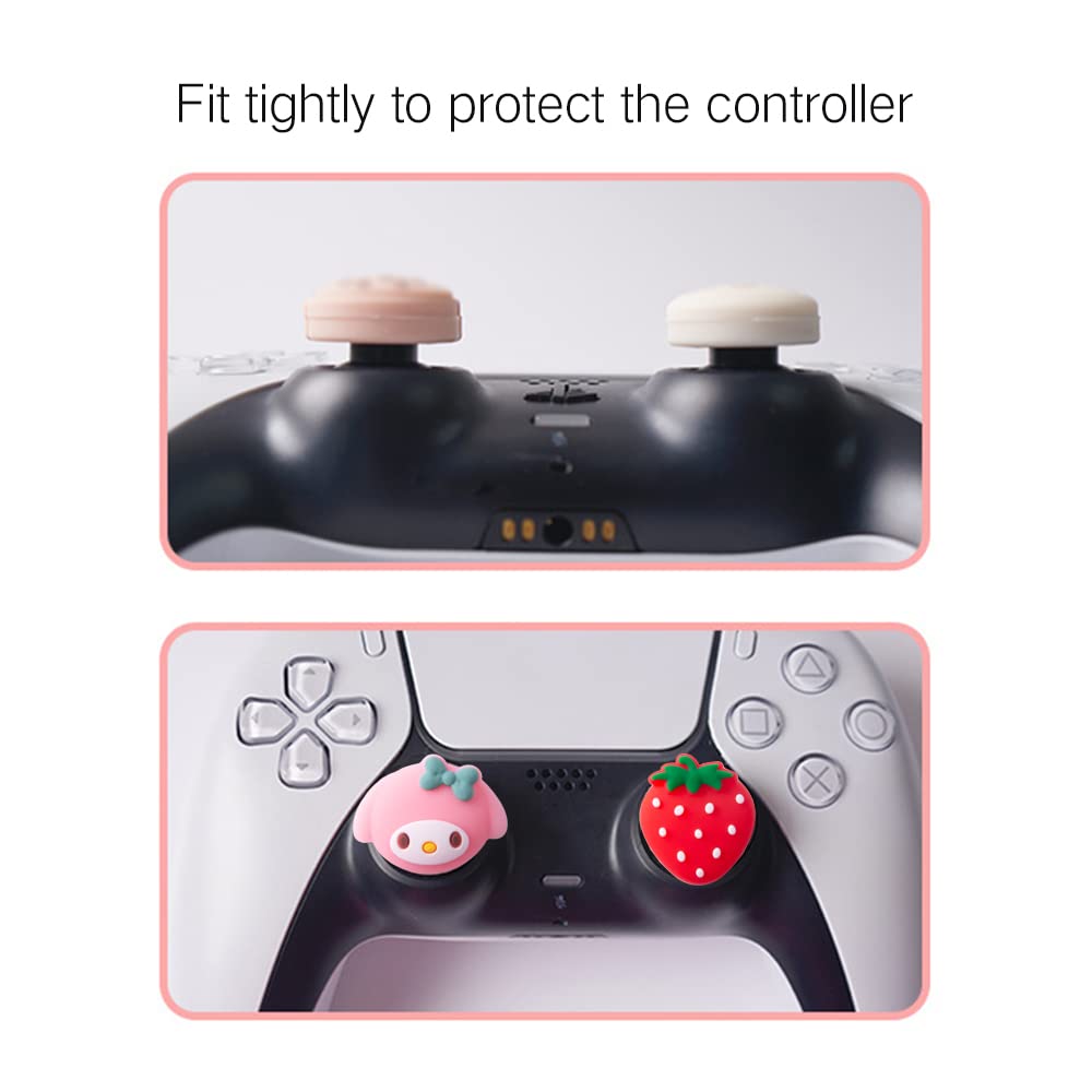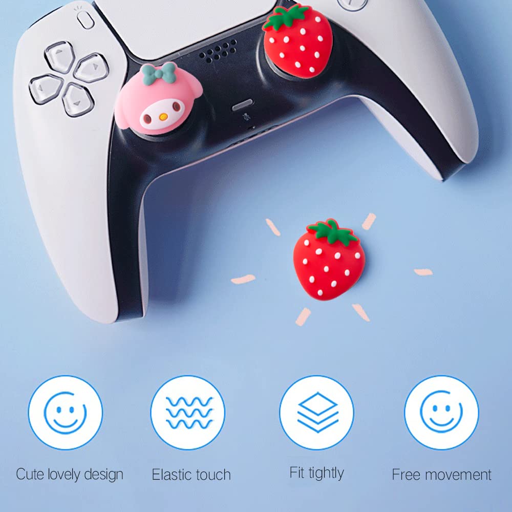PERFECTSIGHT Cute Thumb Grip Caps for Playstation 4/5, PS5, PS4, Xbox Series X/S, Xbox One, Switch PRO Controller, 4PCS Kawaii Soft Skin Rubber 3D Analog Thumbsticks Grips Joystick Cover, Strawberry PERFECTSIGHT Cute Thumb Grip Caps for PS5/PS4/Xbox One (Series X, S)/Nintendo Pro Controller, Anime Thumbsticks Joystick Cap, 3D Kawaii Soft Skin Silicone Analog Stick Button Covers, Joystick Grip Button Caps Cute Thumb Grip Caps Compatible with PS5/PS4/Xbox One (Series X, S)/Nintendo Pro Controller! Enjoy more responsive and comfortable with gaming experience with cute thumb stick grips. Protect your joy-con sticks from everyday wear and tear while getting better control and accuracy during game play. Ideal for switch gamer lovers. Features: Cute lovely design, eye-catching decoration-- Cute animal theme design makes PS5/PS4/Xbox One/360/NS PRO Controller more eye-catching. Adorable spooky designs with 4 cute cartton thumb grips ! Perfect non-slip design -- Increase the friction between finger and controller. Prevent your fingers from slipping and provide more accuracy and sensitivity. Easy Installation -- Just turn the grips inside-out and pop over the sticks. Edeal Gift -- Treat a fellow gamer or loved one with a cute spooky surprise, or treat yourself! Exquisite packing make it a great accessory gift for Swtich fans. Specification: Material: Silicone Compatible models: PS5/PS4/Xbox One/360/NS PRO Controller Package include: 4* Cute Thumb Grips Caps