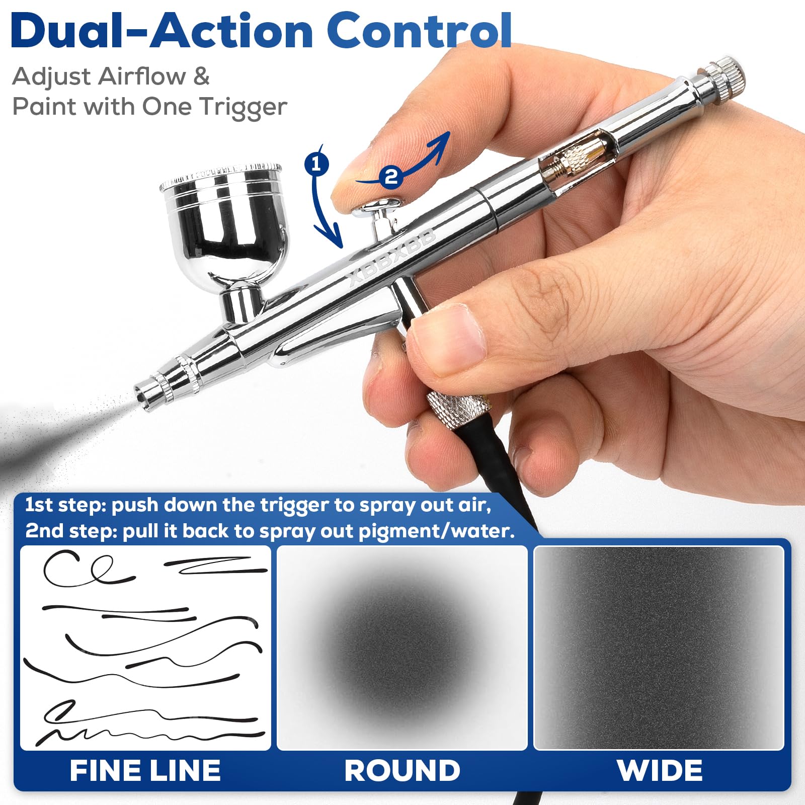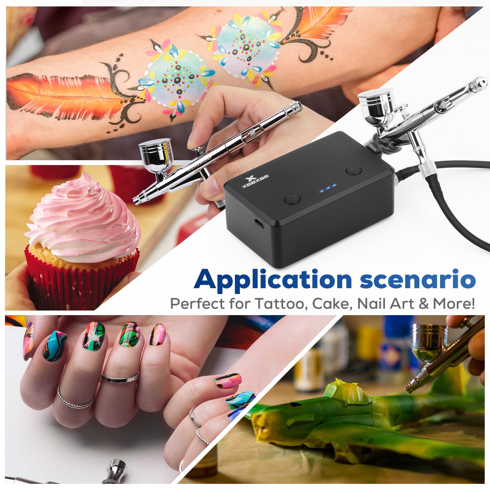 Versatile for Pros & Beginners – Perfect for airbrush painting, nail art, scale models, body art, and DIY crafts. Includes essential tools (cleaning brush, hose) for easy setup and maintenance.