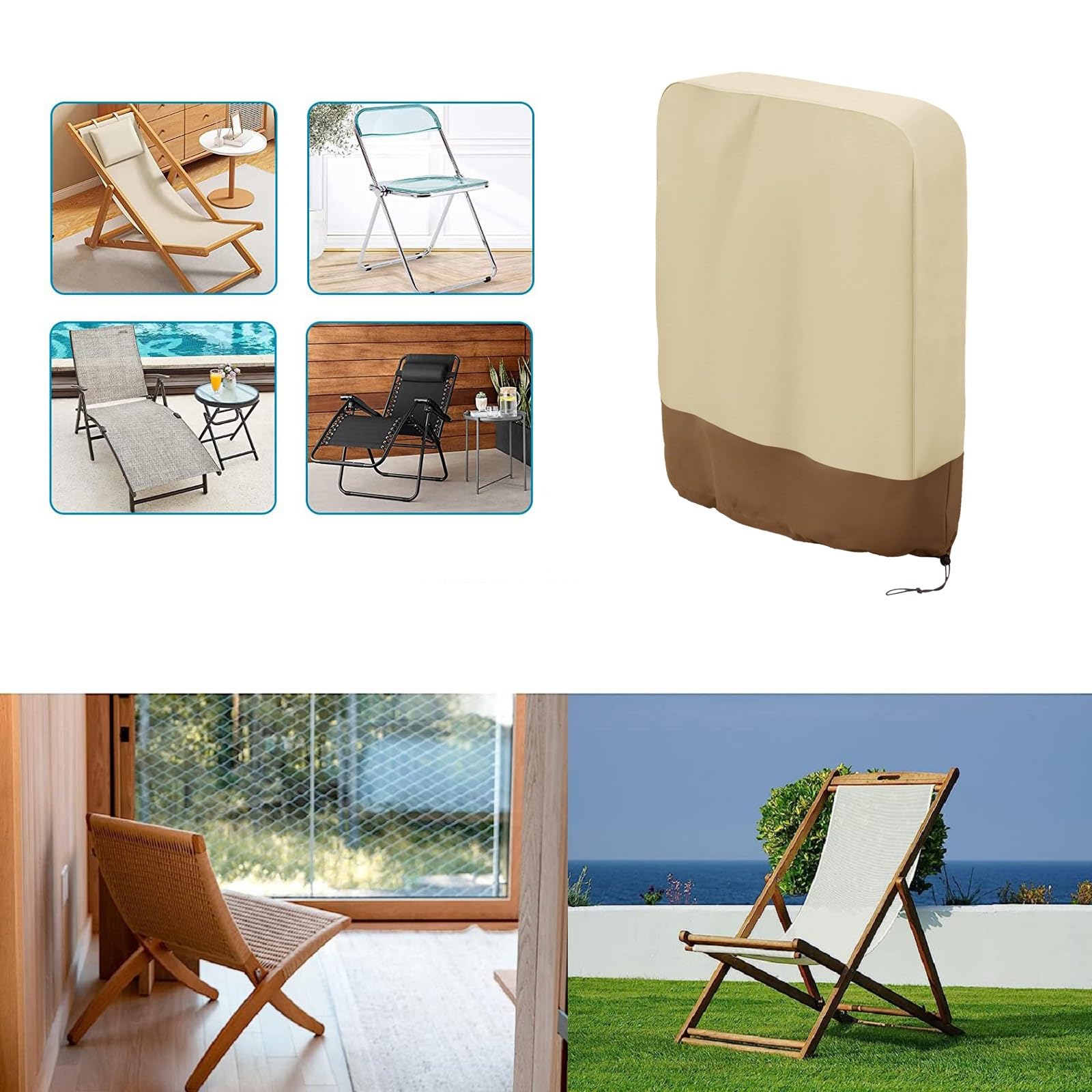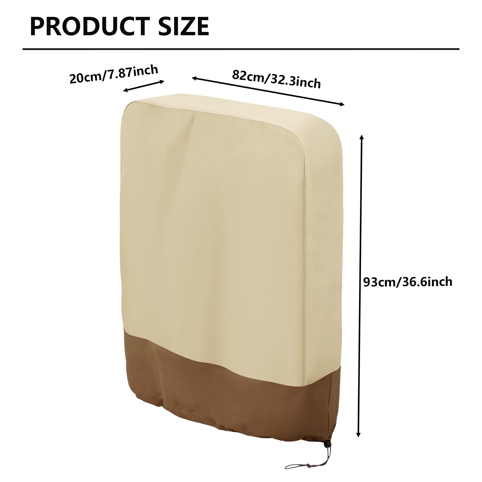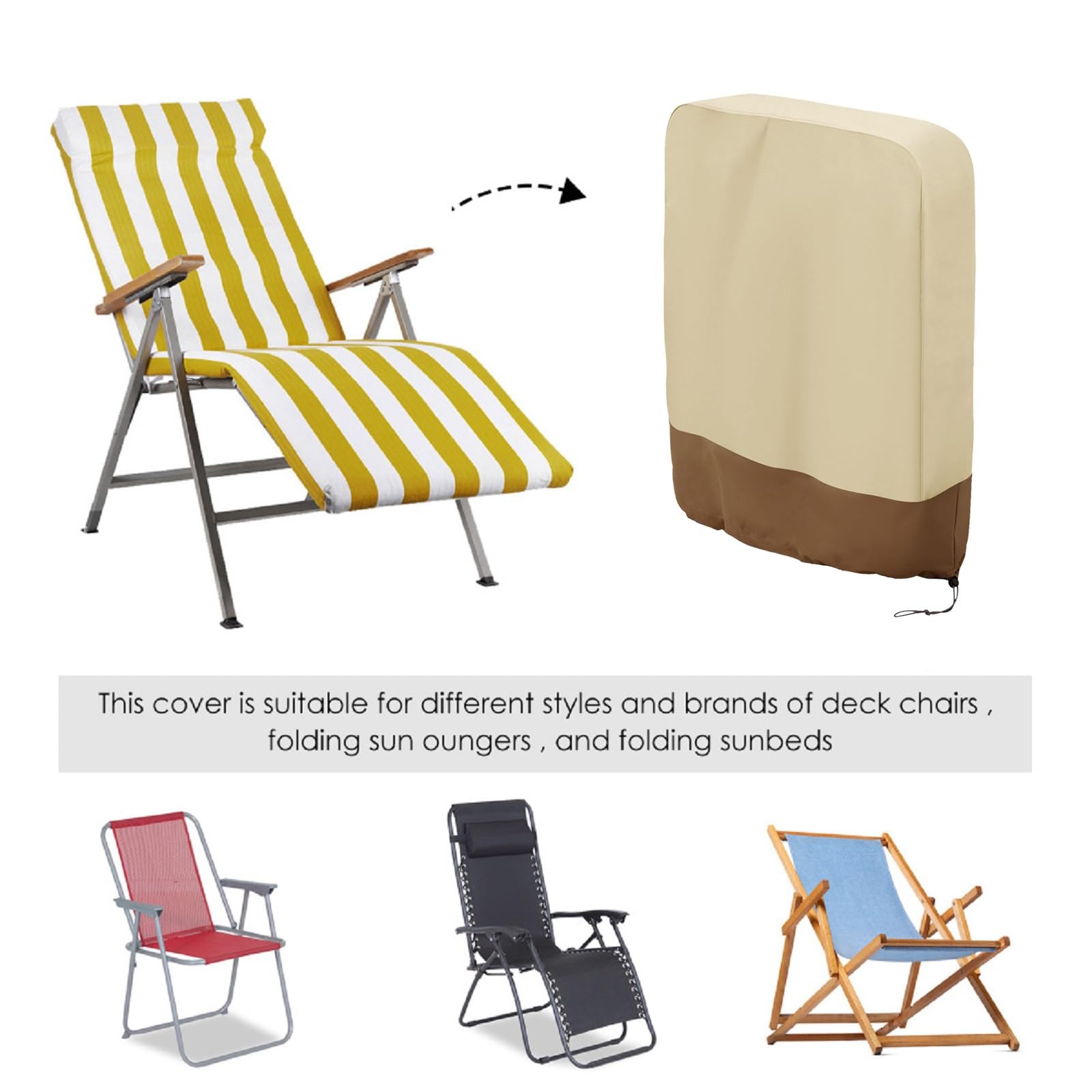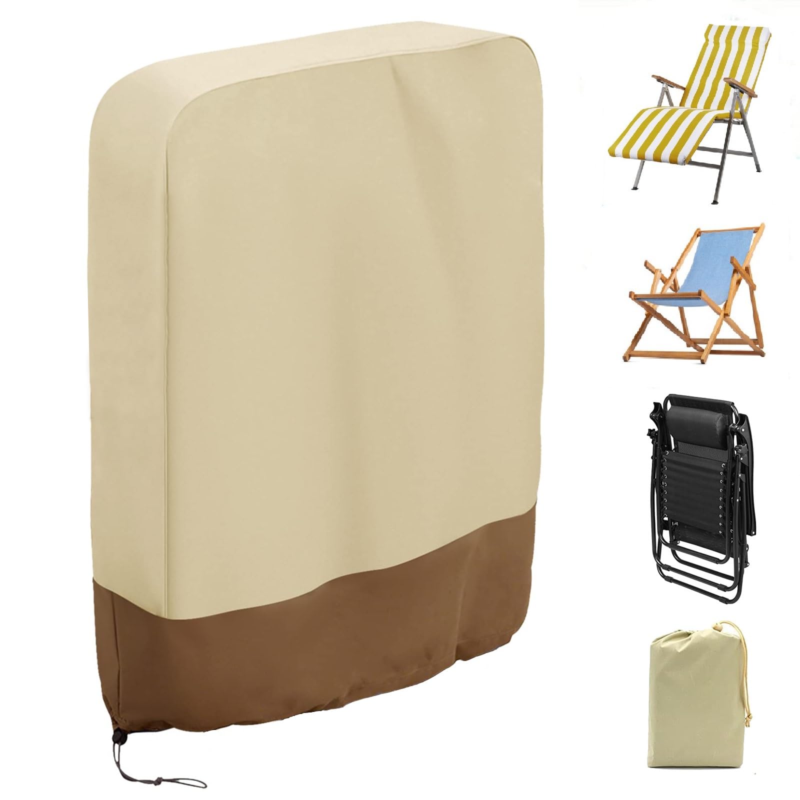 The folding recliner chair cover can protects your chair from dirt and dust Keep your folding recliner chair clean and safe, avoiding being covered a layer of dust on your outdoor chairs after a period of inactivity, no need to clean up the chair when you sit in it next time. The adjustable hem cord with toggle allows adjustment for a tight, securely covering in the windy days, easy on and easy off, keeps your chair dry and clean in the backyard/garden. Material: 190T Polyester fabric Weight: 0.3kg Colour: Black / Beige Product size: 32.3 inch W x 7.87 inch D (Bottom) x 36.6 inch (82 cm×20 cm×93 cm) Package size: 8.7 inch × 6.8 inch × 2.4 inch(22 cm×18 cm×6 cm) Package include: 2 x Folding recliner chair cover 2 x Storage pouch