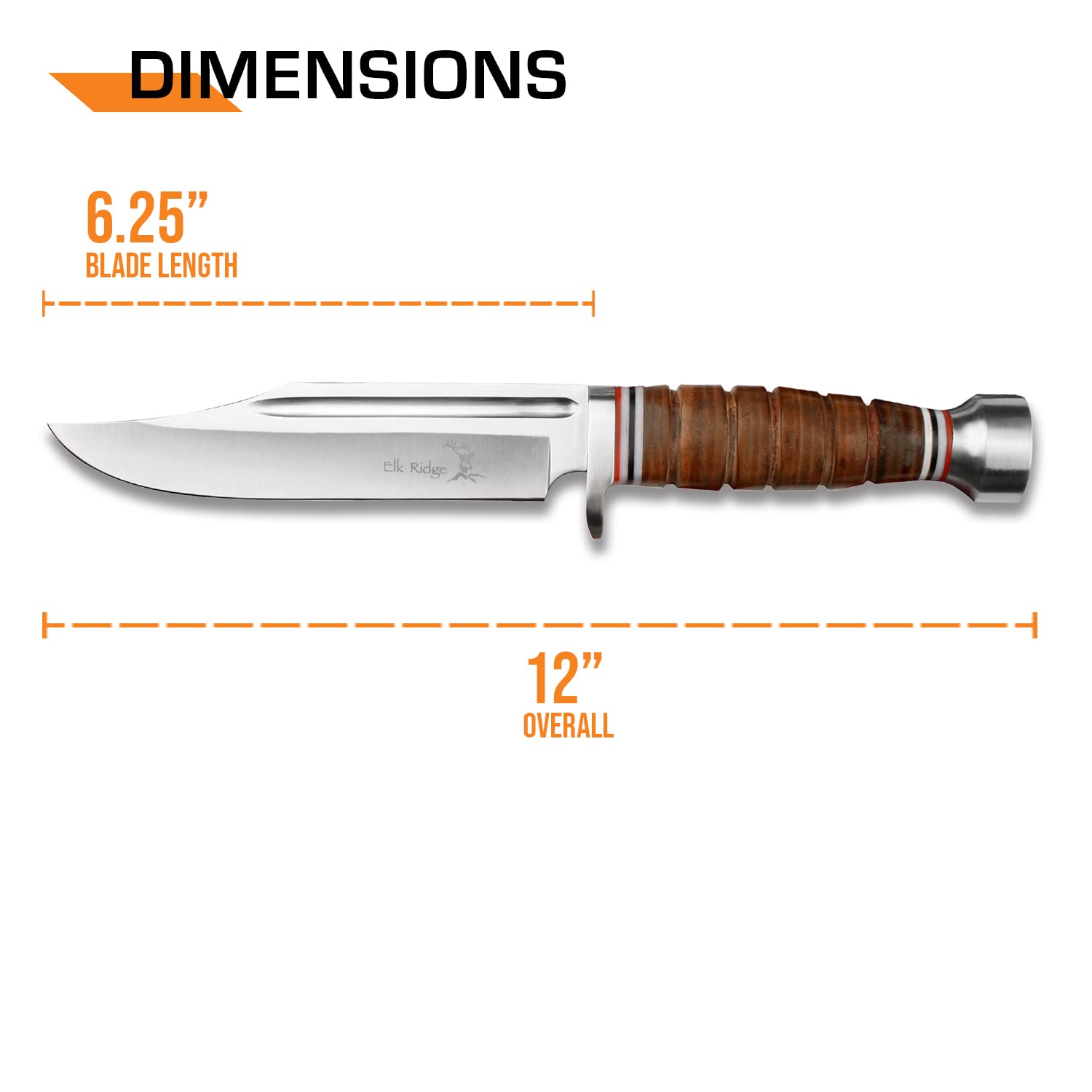 DIMENSIONS: 6.25-inch drop point blade, 5.75-inch handle, 12-inches overall.