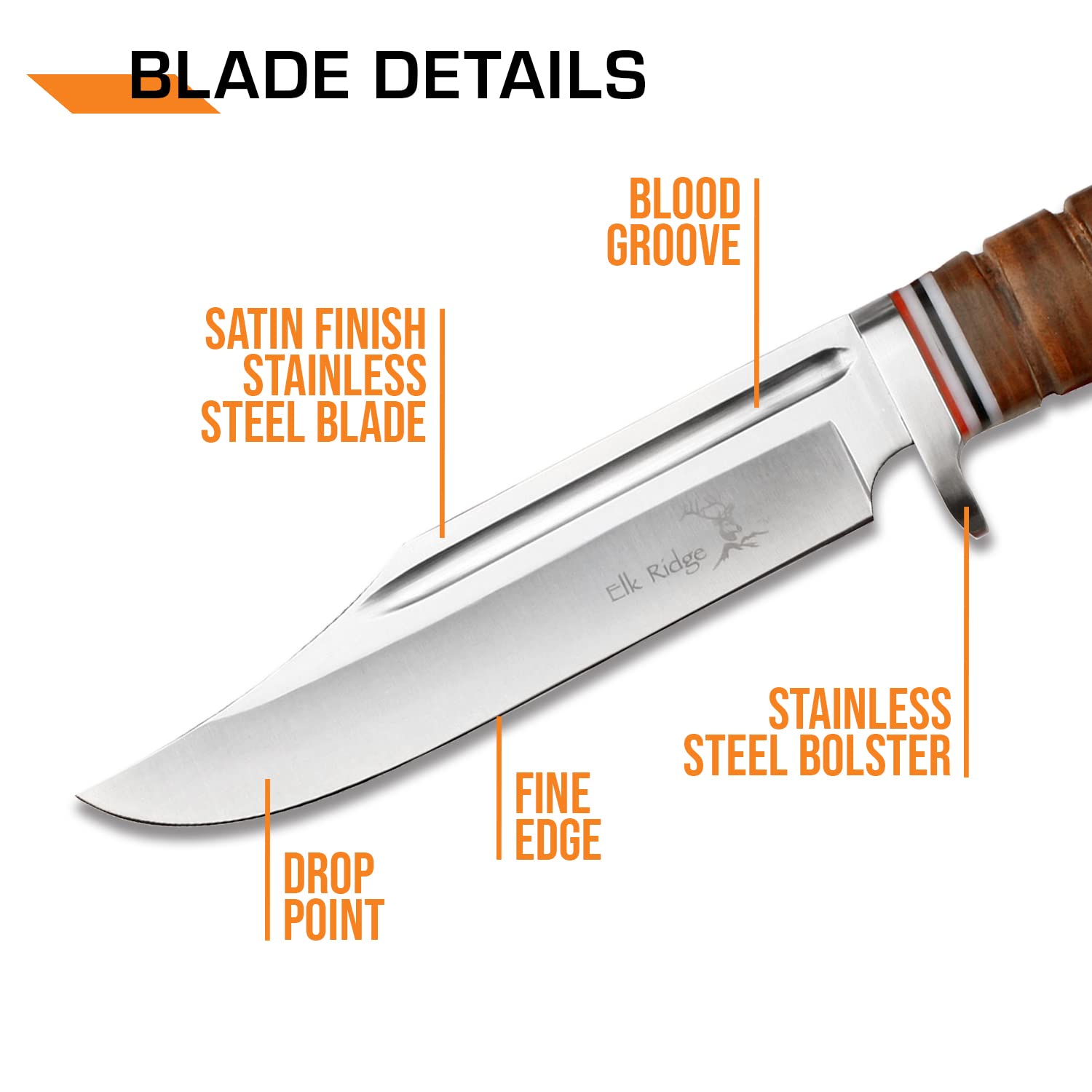 HIGH QUALITY MATERIALS: Made from quality materials. 3CR13 mirror polished stainless steel fine edge drop point blade with blood groove provides an excellent balance of hardness and corrosion resistance.