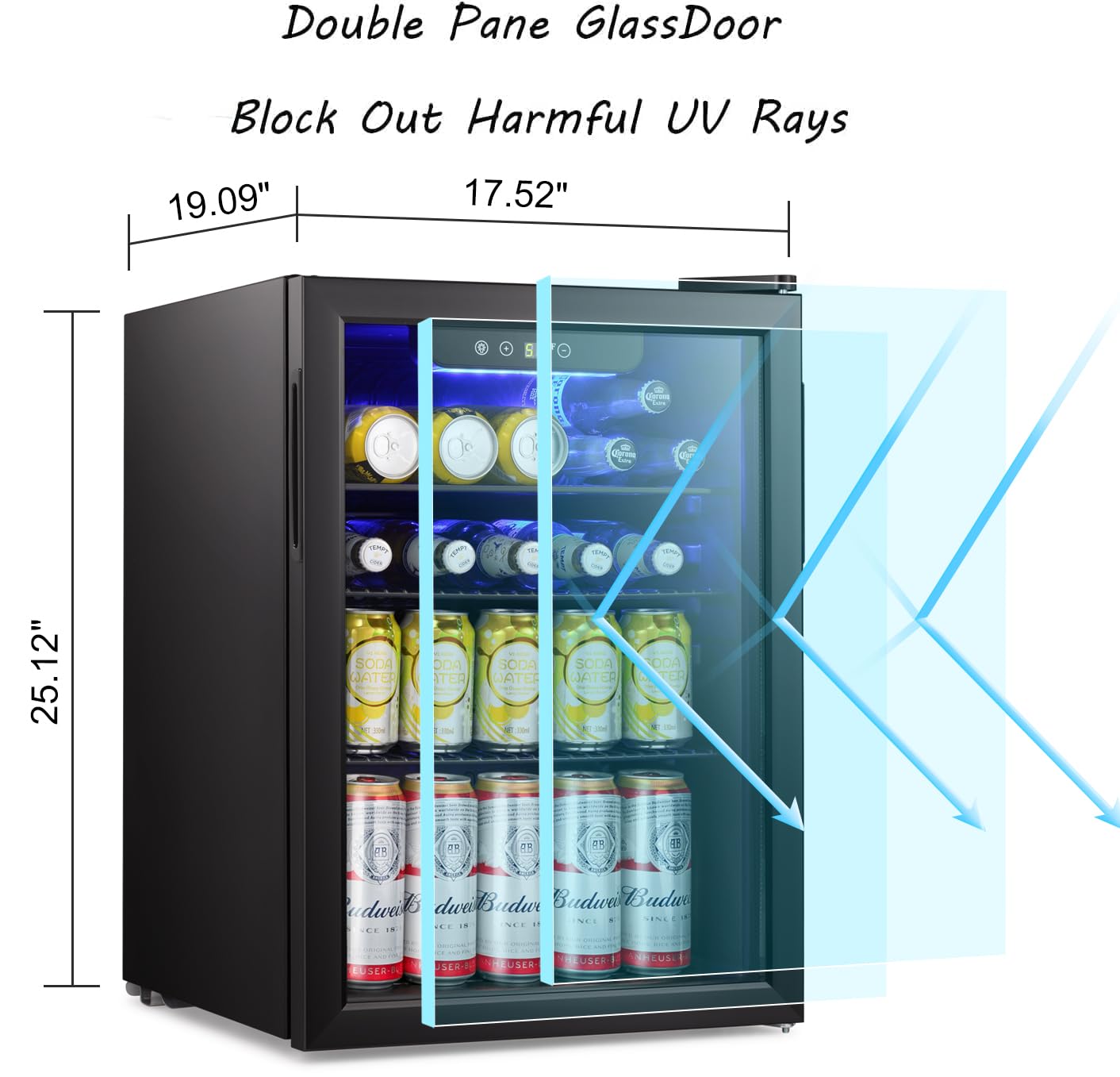 BIG STORAGE-2.4 Cu. Ft. capacity holds up to 85 12-oz. cans in this beverage refrigerator. Mini size fit for everywhere, especially, perfect for your playroom, small kitchen and office.