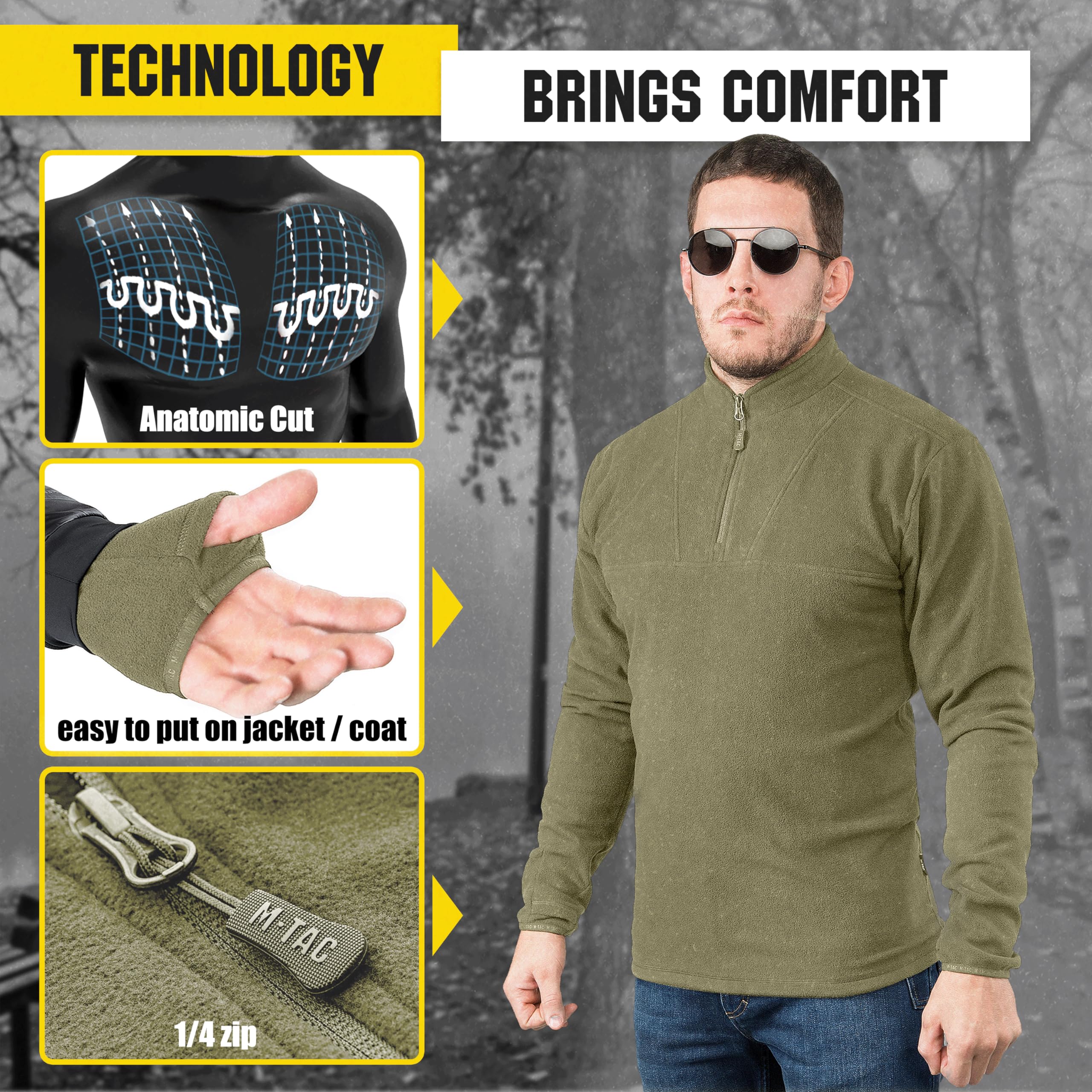 LIGHTWEIGHT INSULATION – Breathable fleece traps heat yet stays light and flexible, making this men’s shirt ideal for hiking, tactical missions, or cold-weather training.