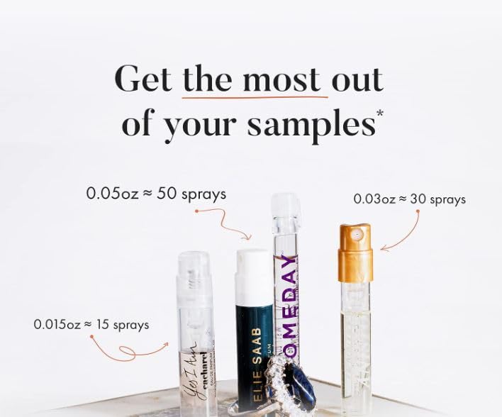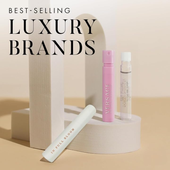 Perfume Sampler Sets for Women: experience a curated set of travel size designer perfume samples from the comfort of home.