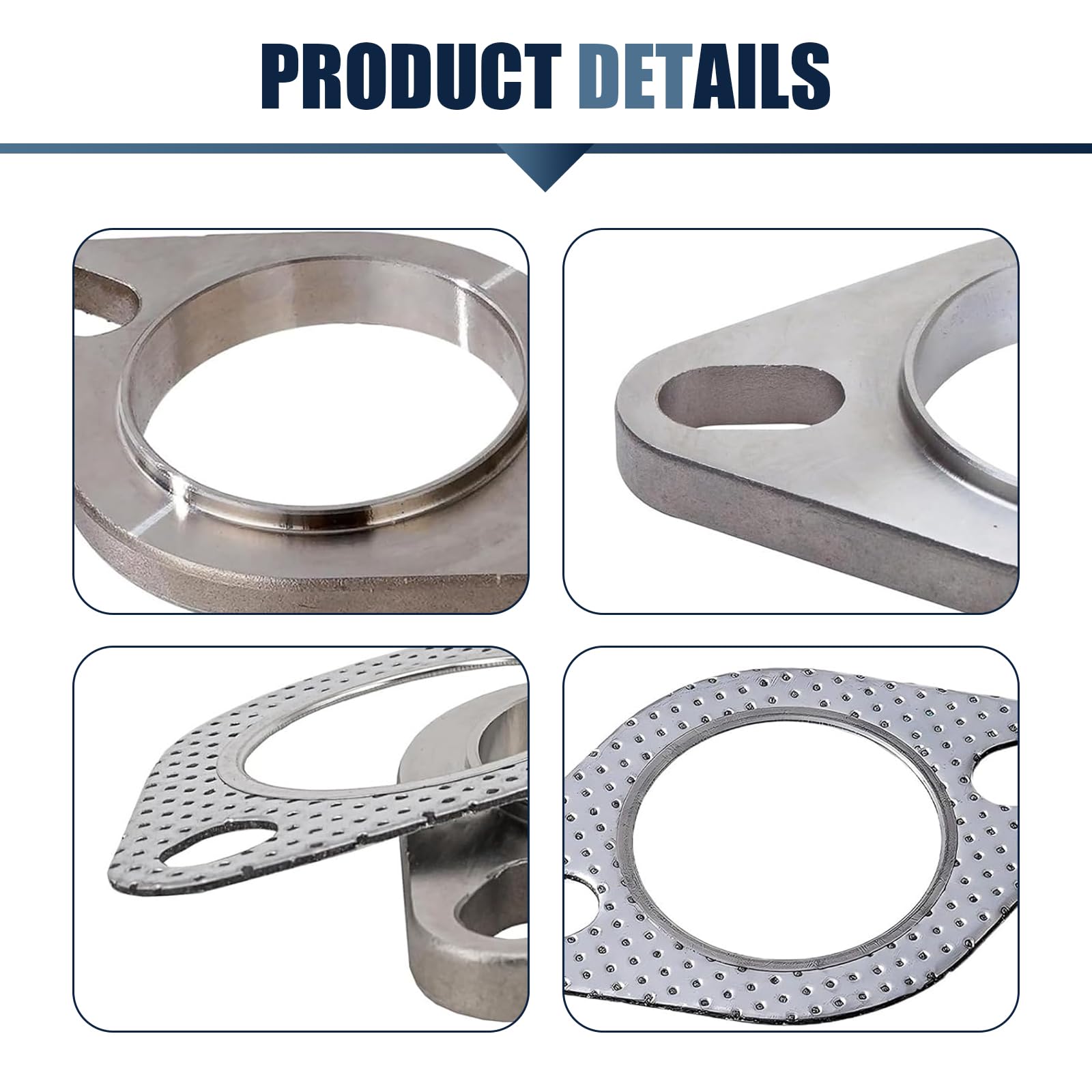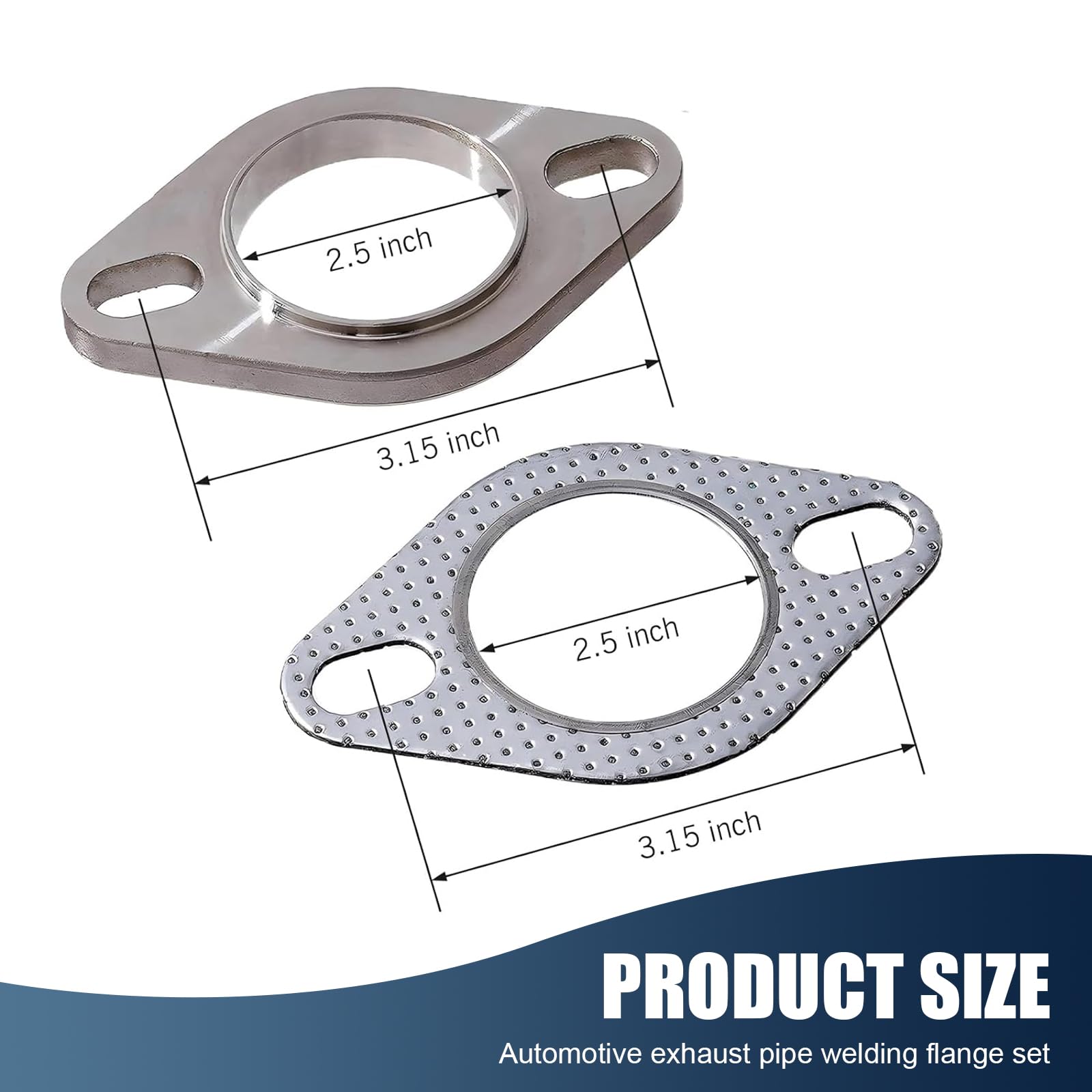 Universal 2.5-inch Compatibility: Designed for 2.5-inch outer diameter exhaust systems, with an elliptical bolt hole pattern (2.9~4.6 inches/74~117 mm spacing). It fits most cars, trucks, SUVs with compatible exhaust flange configurations.