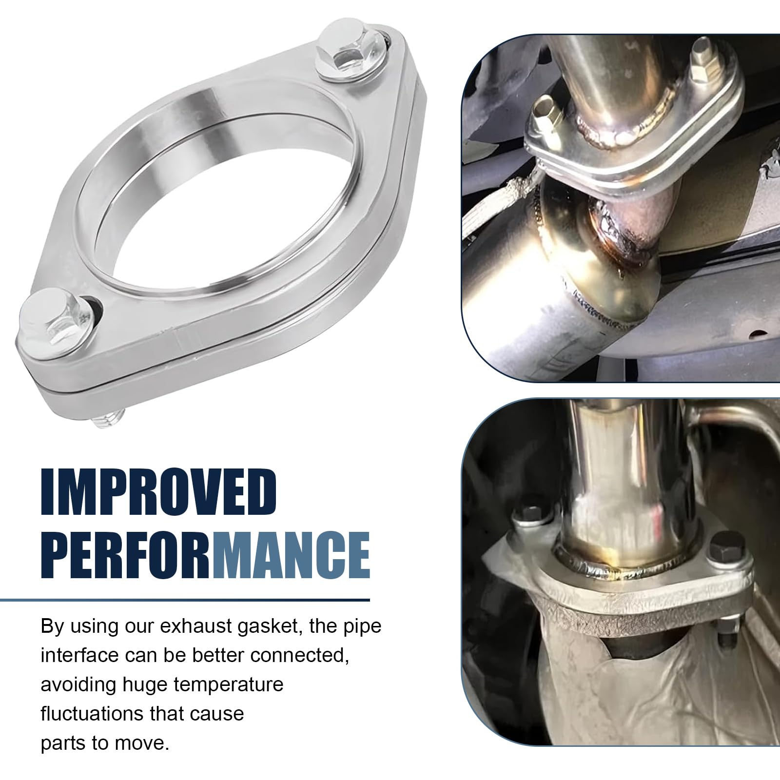 Durable Construction: This exhaust flange repair kit has high-quality stainless steel gaskets (silver finish) that withstand exhaust system high temperatures without deformation or strength loss. The robust material resists wear and maintains structural integrity for long-lasting use.