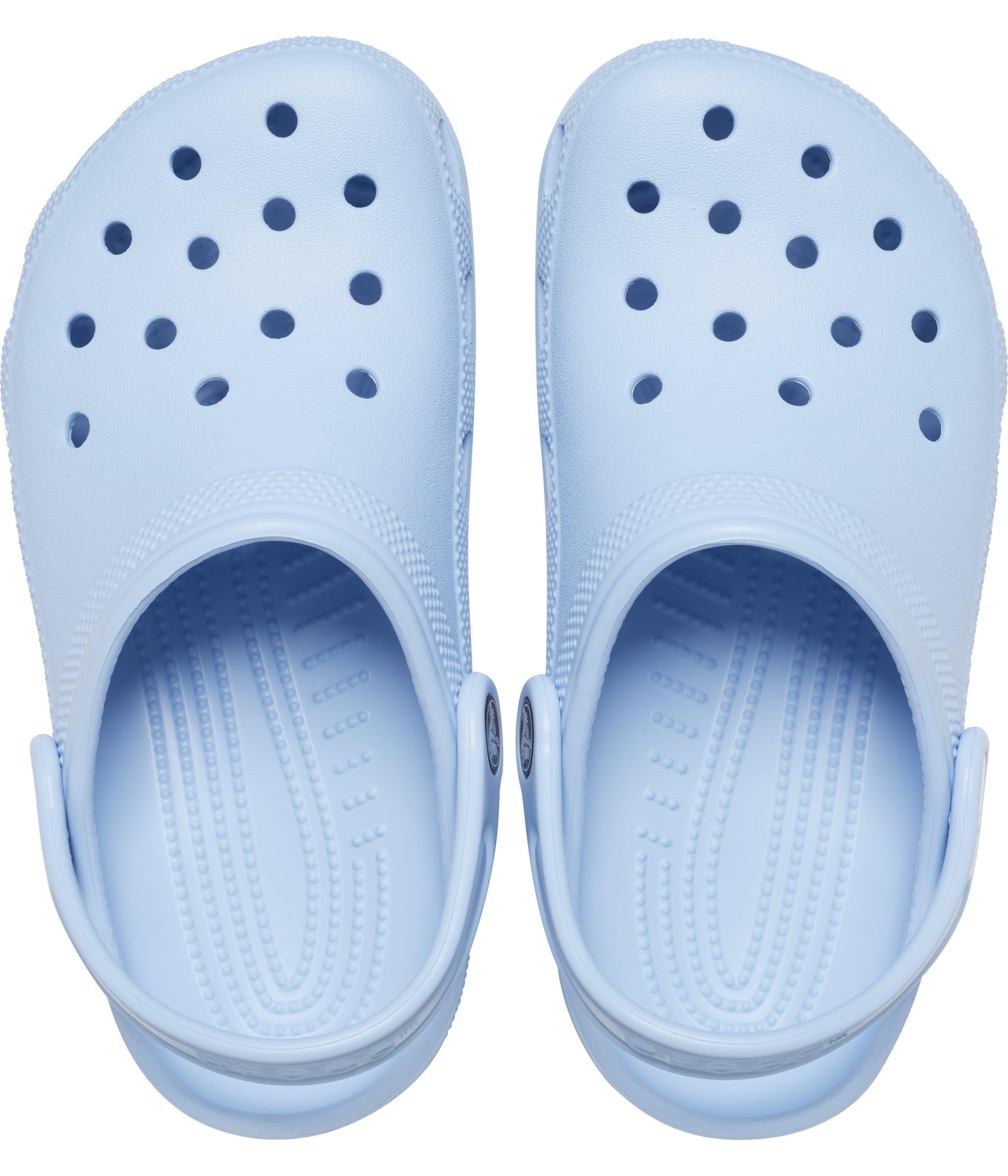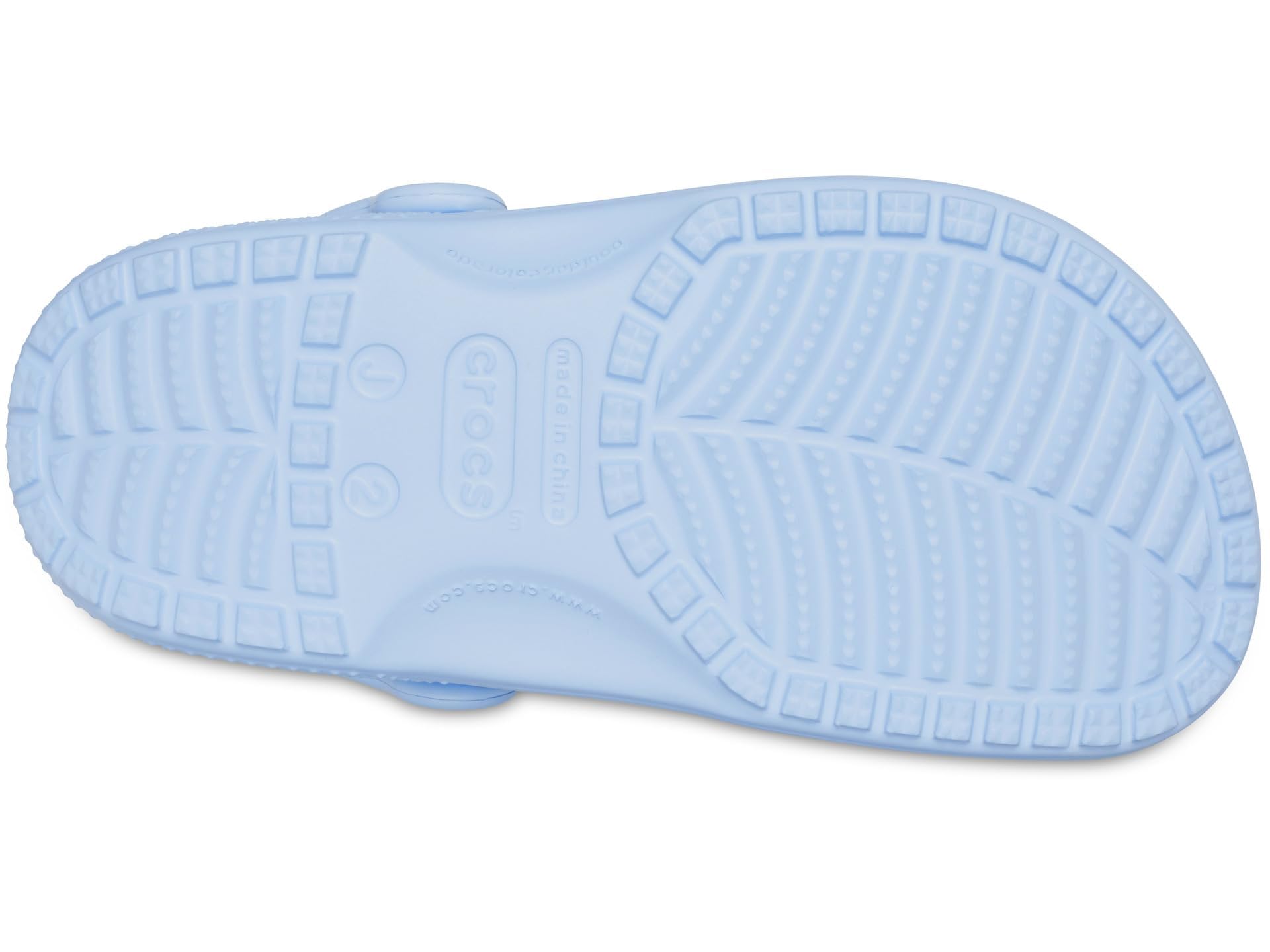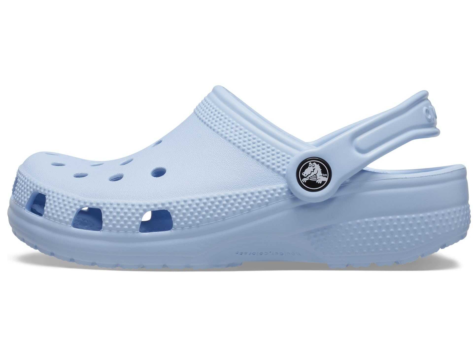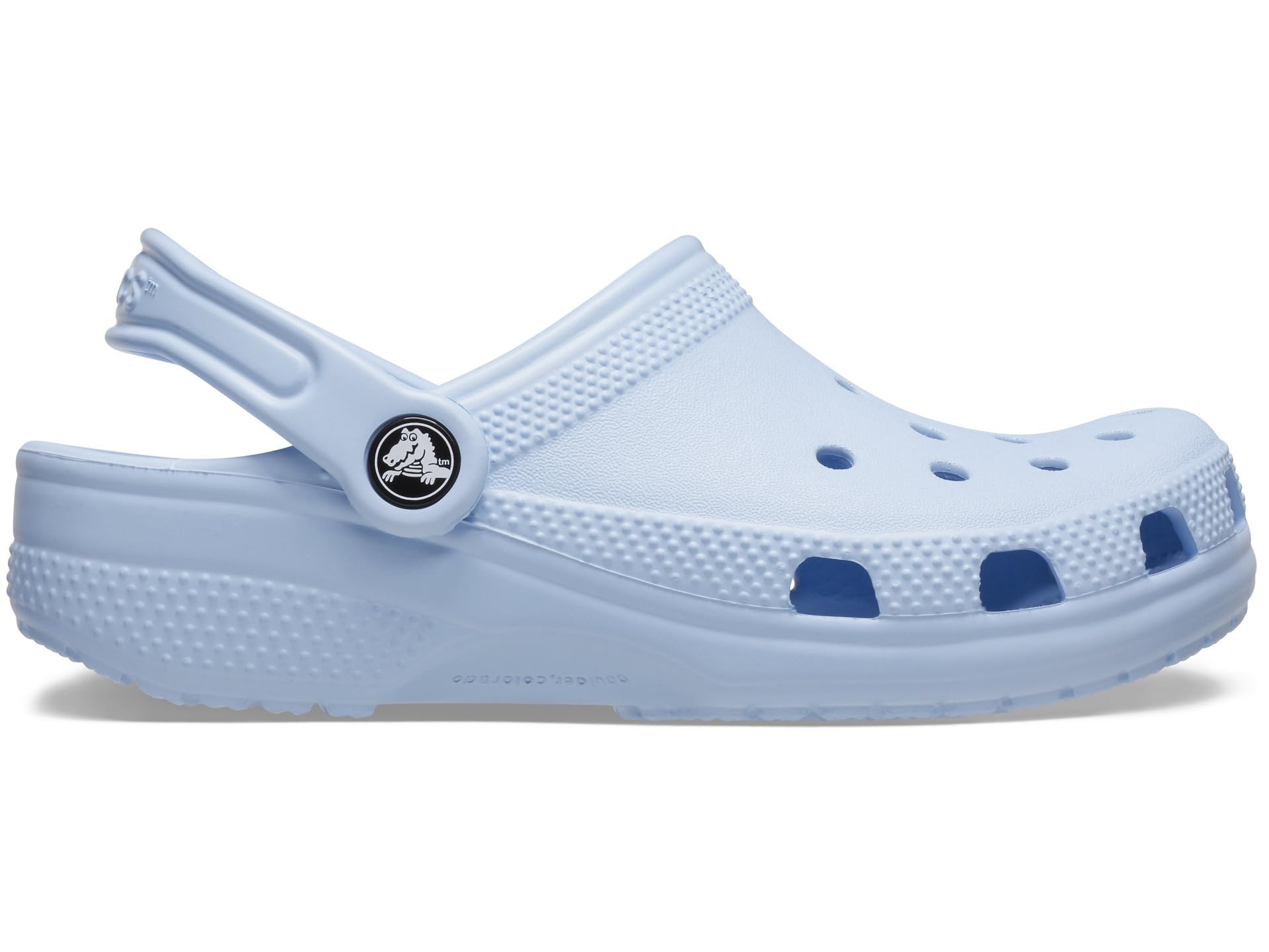 Description Toddler Classic Clog design with Croslite upper, featuring a front ventilation port, pivoting ankle straps with embossed Crocs logo, and molded Croslite foam outsole. Available in Blue Calcite color and made from Croslite material.
