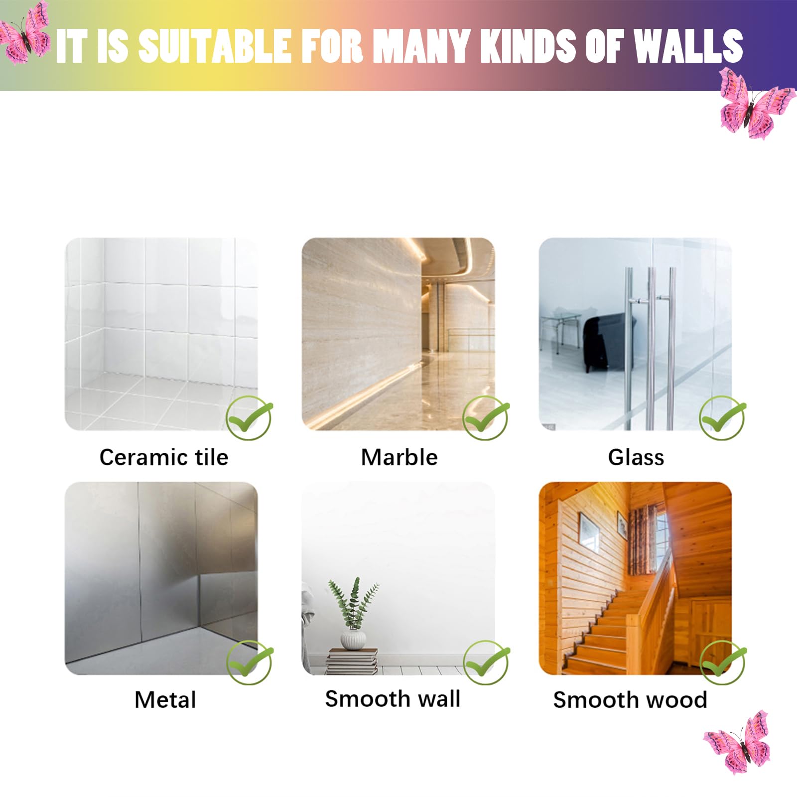 【Strong Magnetic& Stickiness】Butterflies have magnets that can be applied to metal surfaces. You can use it as a refrigerator sticker, locker decor, or something else. The double-sided adhesive points have strong adhesion and will not leave any marks on the surface after removal.