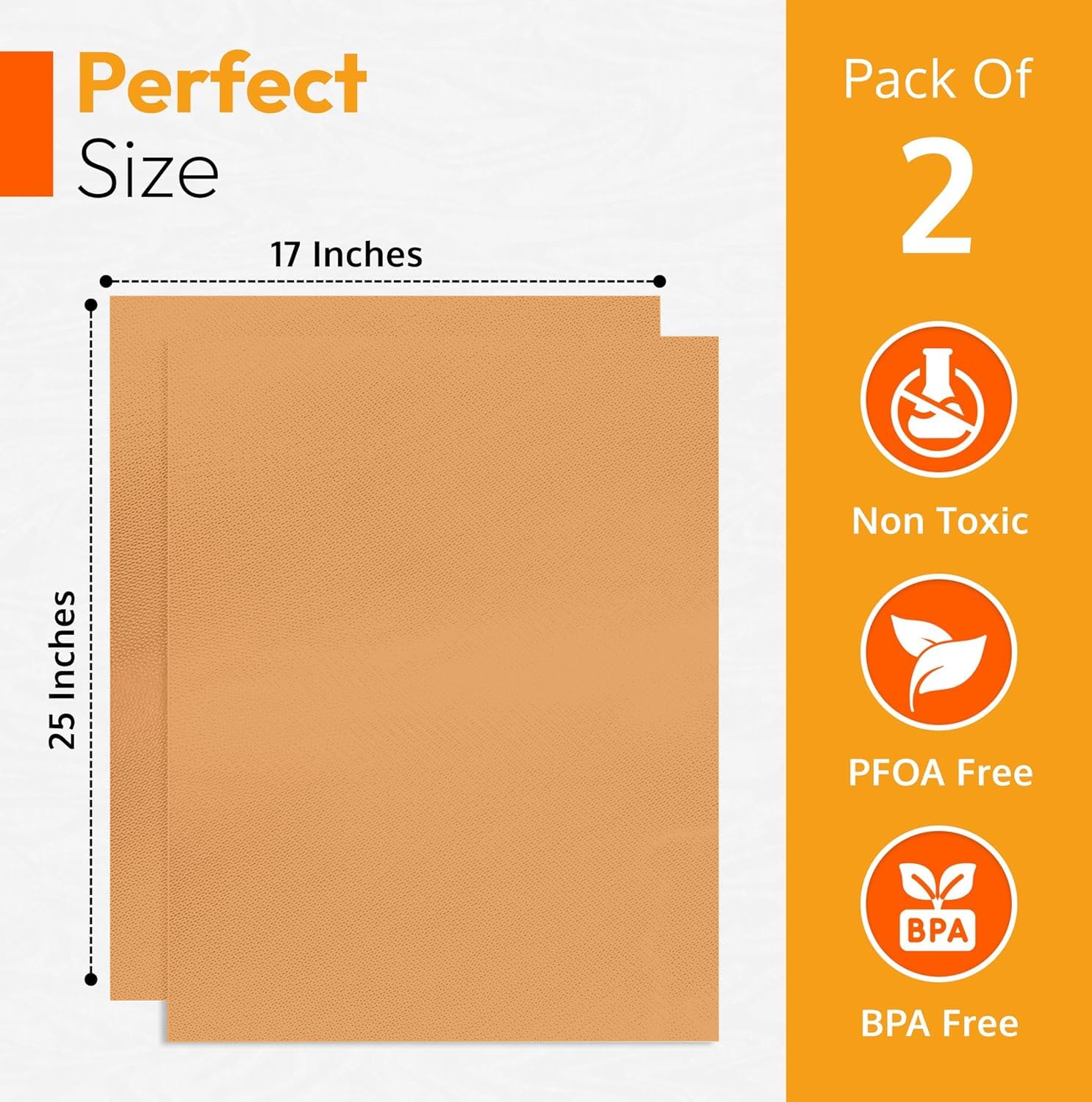 PREMIUM QUALITY: Set of 2 large 17"x 25" heavy-duty non-stick oven liners for the bottom of electric ovens fits most standard-sized ovens and can be trimmed to fit custom sizes. A great alternative to aluminum foil, oven mat for bottom of oven protect your oven from spills and can withstand up to 500°F (260°C).