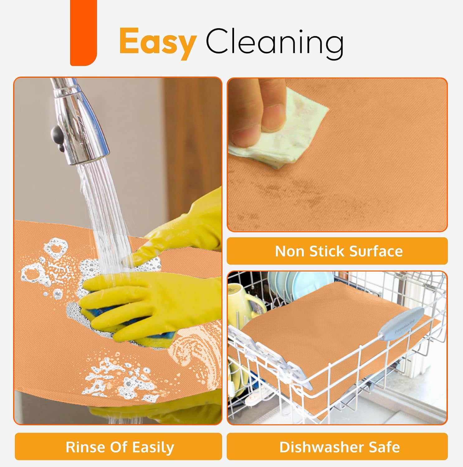 CERTIFIED BPA & PFOA FREE: A premium copper color oven protectors for bottom of oven that’s BPA & PFOA free, heat-resistant, and built for durability. Oven bottom protector won’t change the taste or smell of your food, offering a safe and reliable cooking surface.