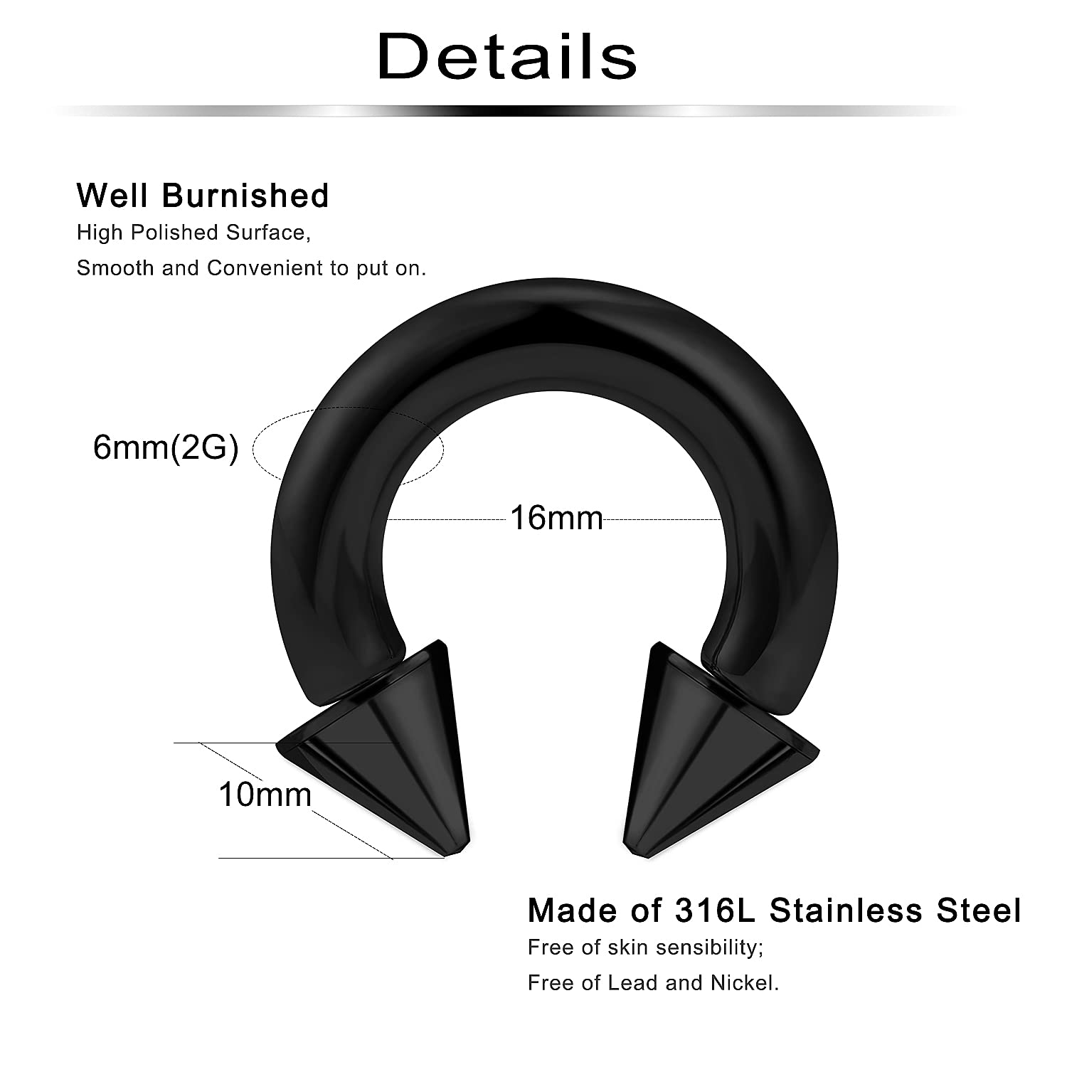 Material: These Circular Horseshoe Barbells Are Made of 316L Stainless Surgical Steel, Solid and Durable, hypoallergenic; High Polished Surface, Very Smooth to Wear, Extremely Easy to Clean.