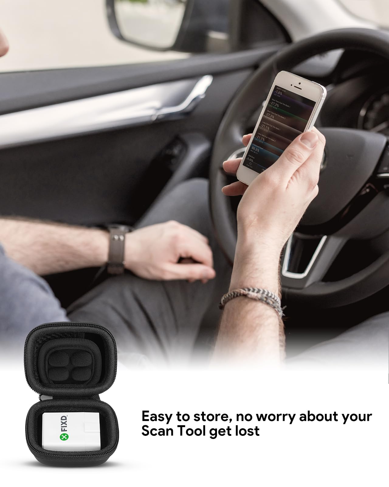 Multiple user scenarios: Perfect for keeping in the car, storing in your boot, or hanging from your backpack. Whether you're a driver or repair personnel, this case ensures your FIXD Bluetooth OBD2 Scanner Diagnostic Tool kit is always ready and secure.