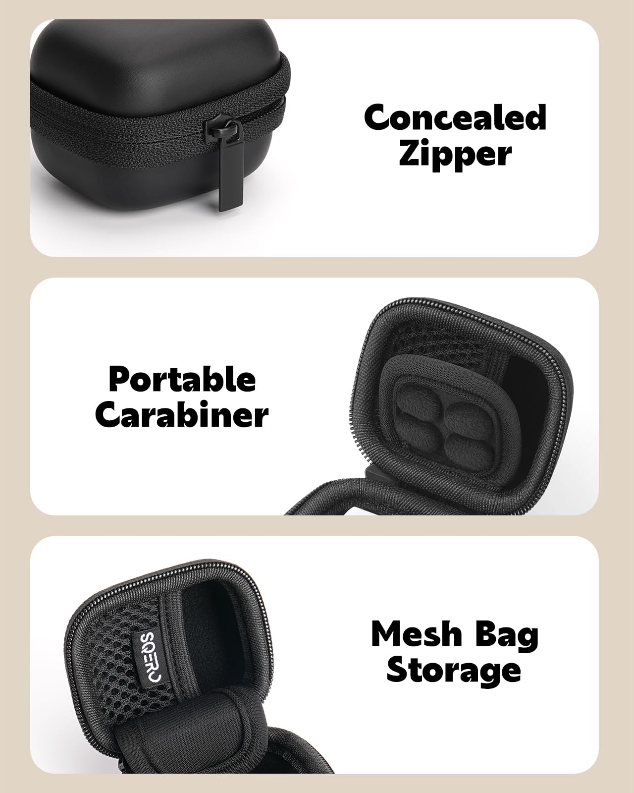 Multifunctional partition storage design: Features a mesh pocket for small items like cables and batteries, plus a dedicated base for the main unit. The accessories are classified in order for more efficient use.