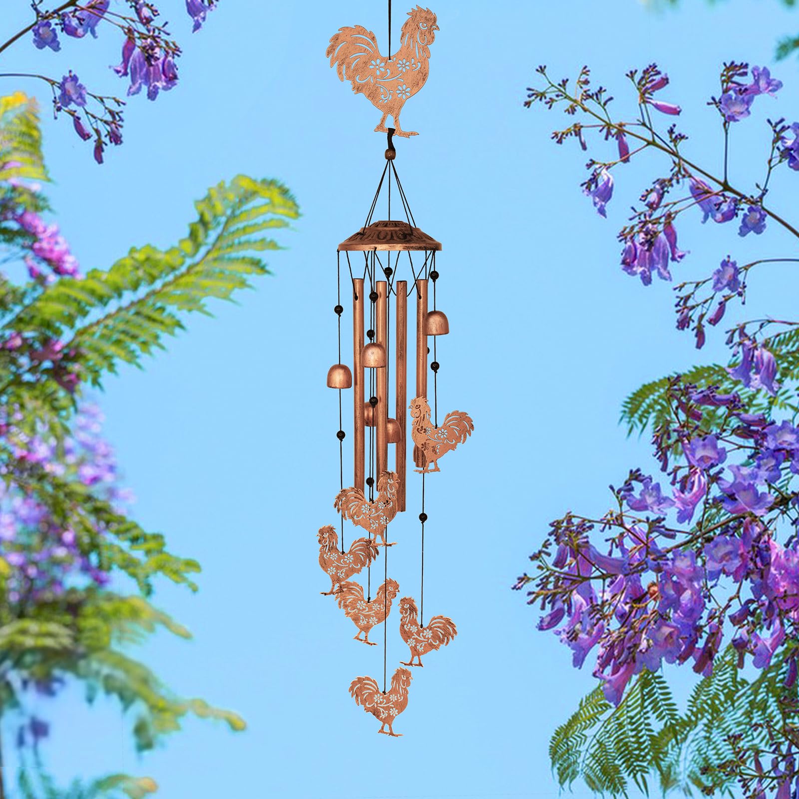 Durable Metal: The chicken decorations are made of high-quality metal and durable nylon rope, and are baked and painted to achieve waterproof, sunlight, and corrosion resistance. Aluminum wind chime tubes are more crisp and pleasing to the ear than other materials and continue to play beautiful music.