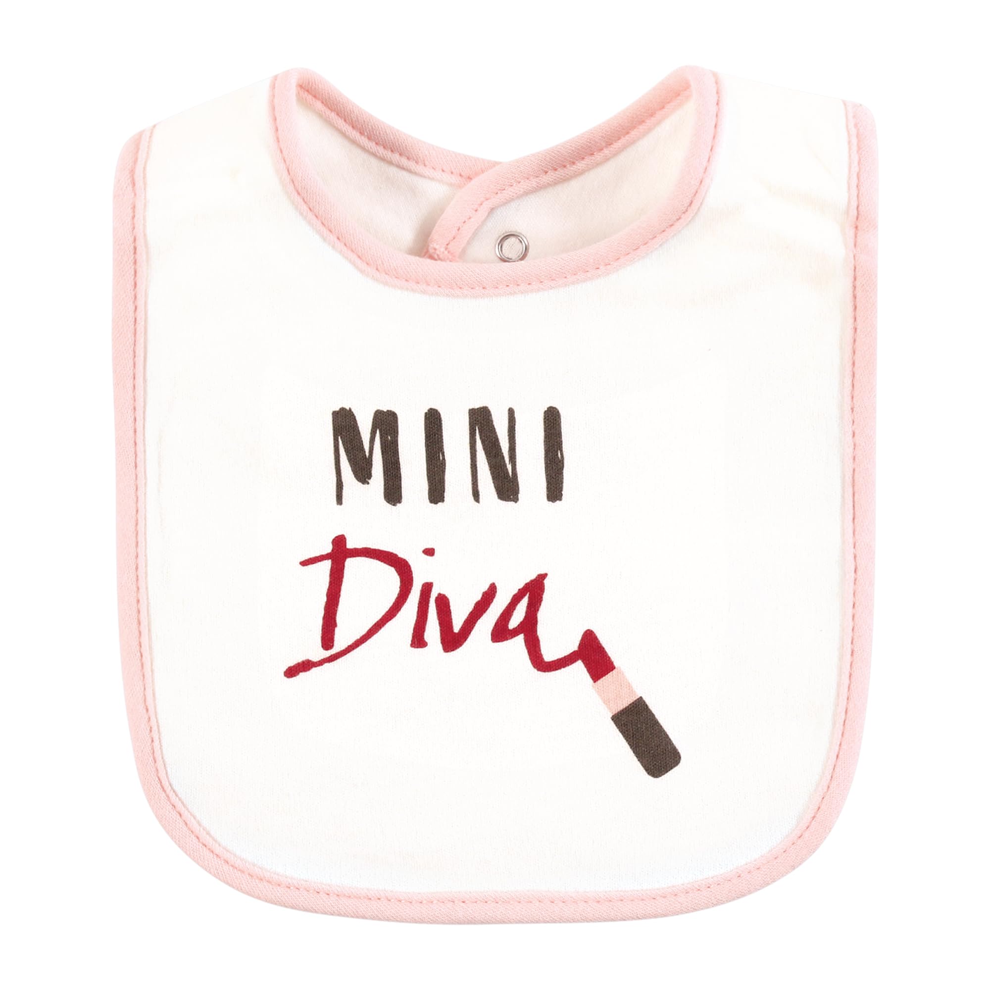 Hudson Baby interlock cotton drooler bibs are fashionable baby bibs made with two layers of soft, gentle cotton. Our bibs feature cute prints and embroideries and are great fashion bibs over baby's clothes to keep their outfits clean. Our bibs are great for drooling, feeding and more.