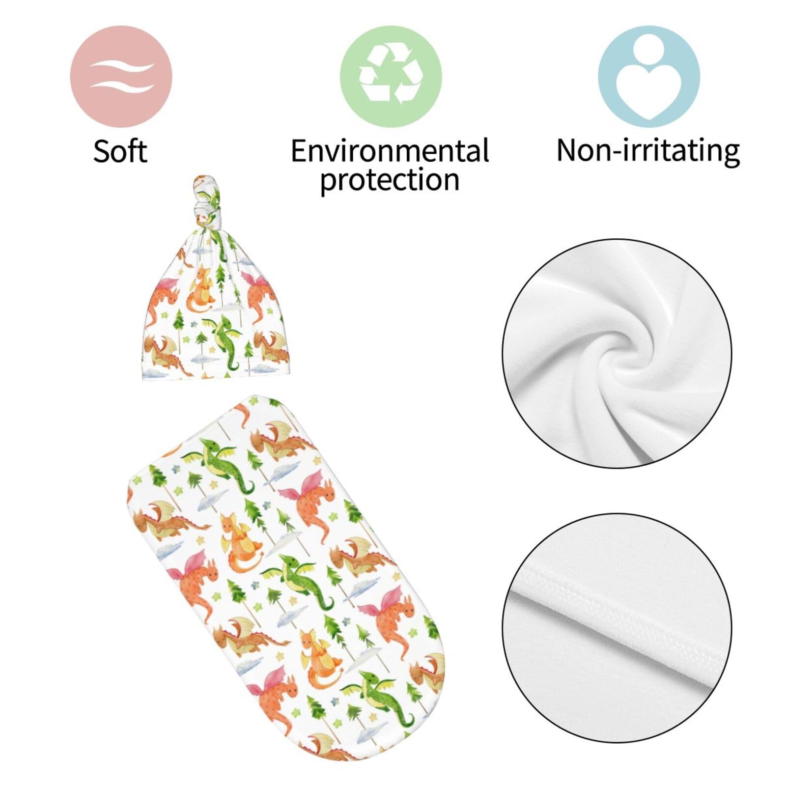 Perfect Size: Swaddle Blanket Is 11.4*20.8 In, Newborn Hat Is 6.5*13 In. This Dragon Swaddle Blanket Is Suitable For Babies Aged 0-6 Months. Beanie Hat Has An Adjustable Knot On The Top, Which Can Be Tightened Or Loosened As Needed To Ensure Comfort For Newborns