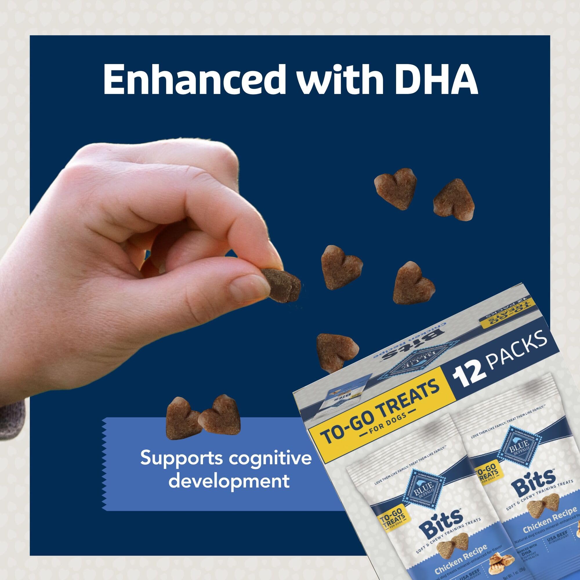 MEATY TRAINING TREATS: For dogs that love a meaty treat, BLUE Bits are tender, bite-sized morsels that are the perfect size for training; plus with DHA to help support cognitive development, they’re an ideal puppy treat
