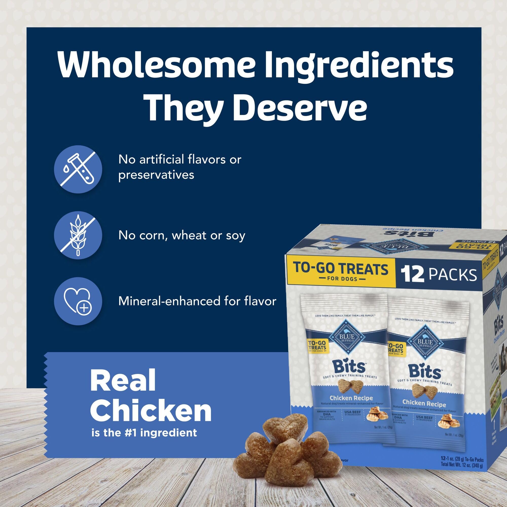 Contains Twelve (12) oz bags of Blue Buffalo BLUE Bits Natural Soft-Moist Training Dog Treats TO-GO, Chicken Recipe
