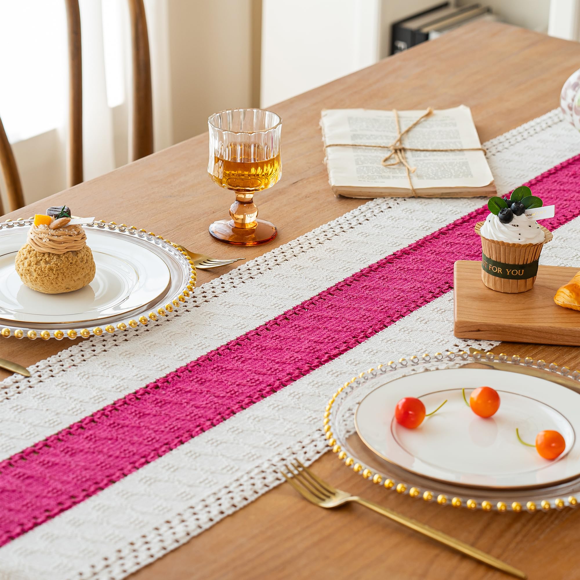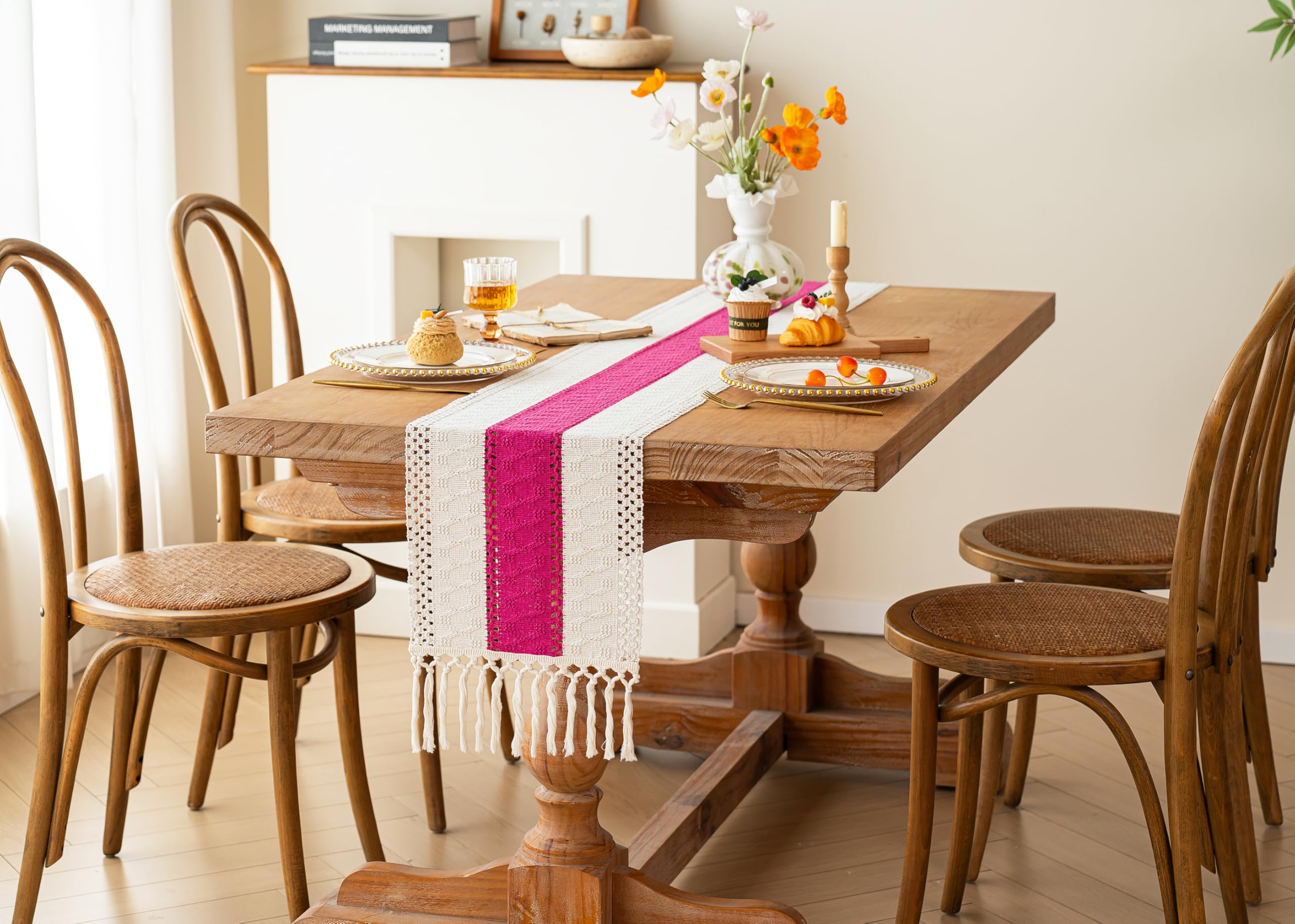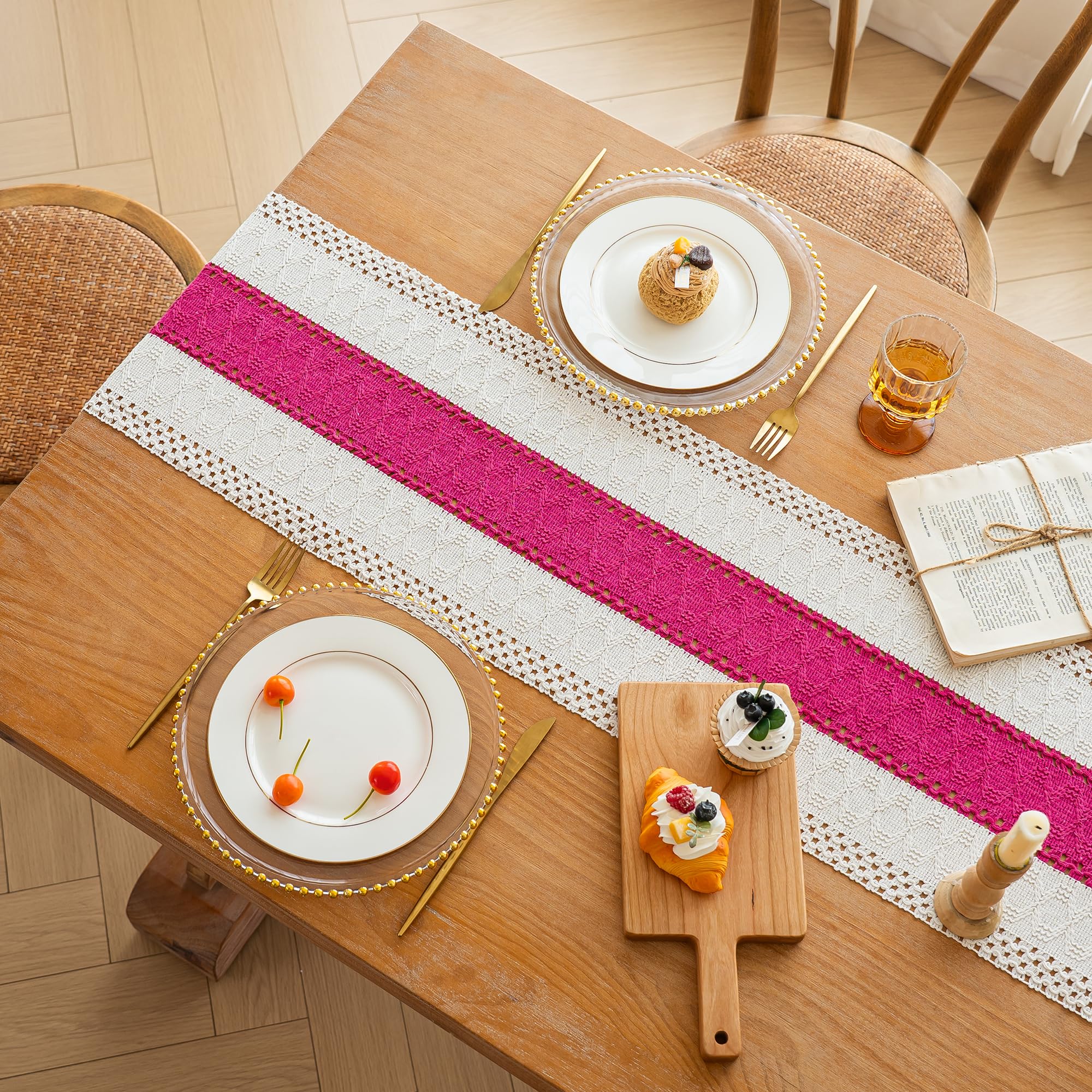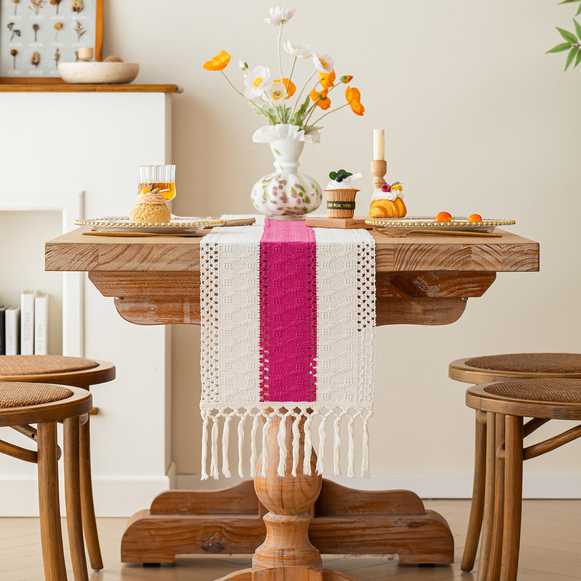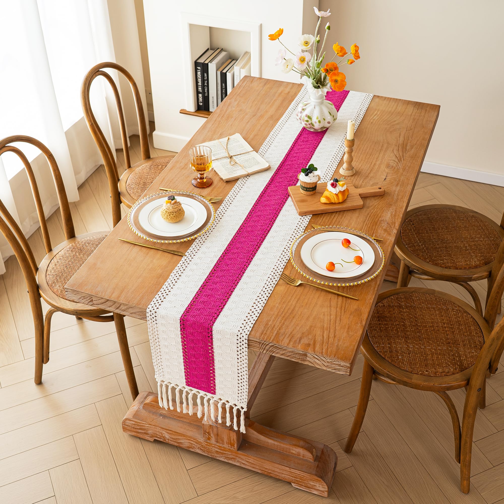 [Boho Home Decor]: The farmhouse table runner is not only suitable for boho dining room decor,house decor,kitchen decor, bedroom decor, book desk, storage table, coffee tables, but also good for piano top, TV stand, bookshelf and more place.