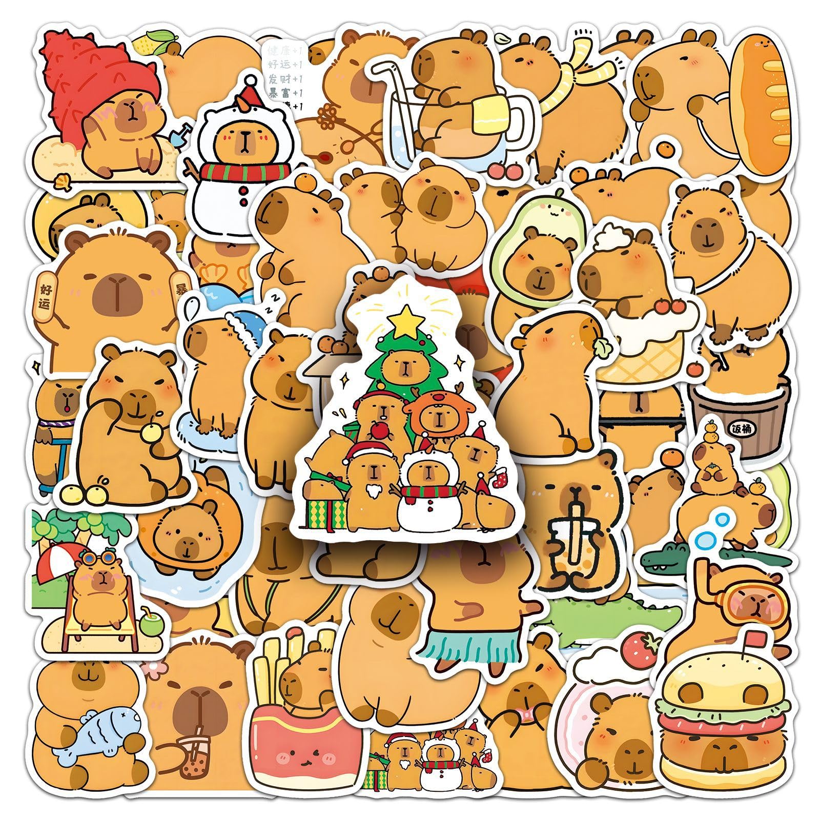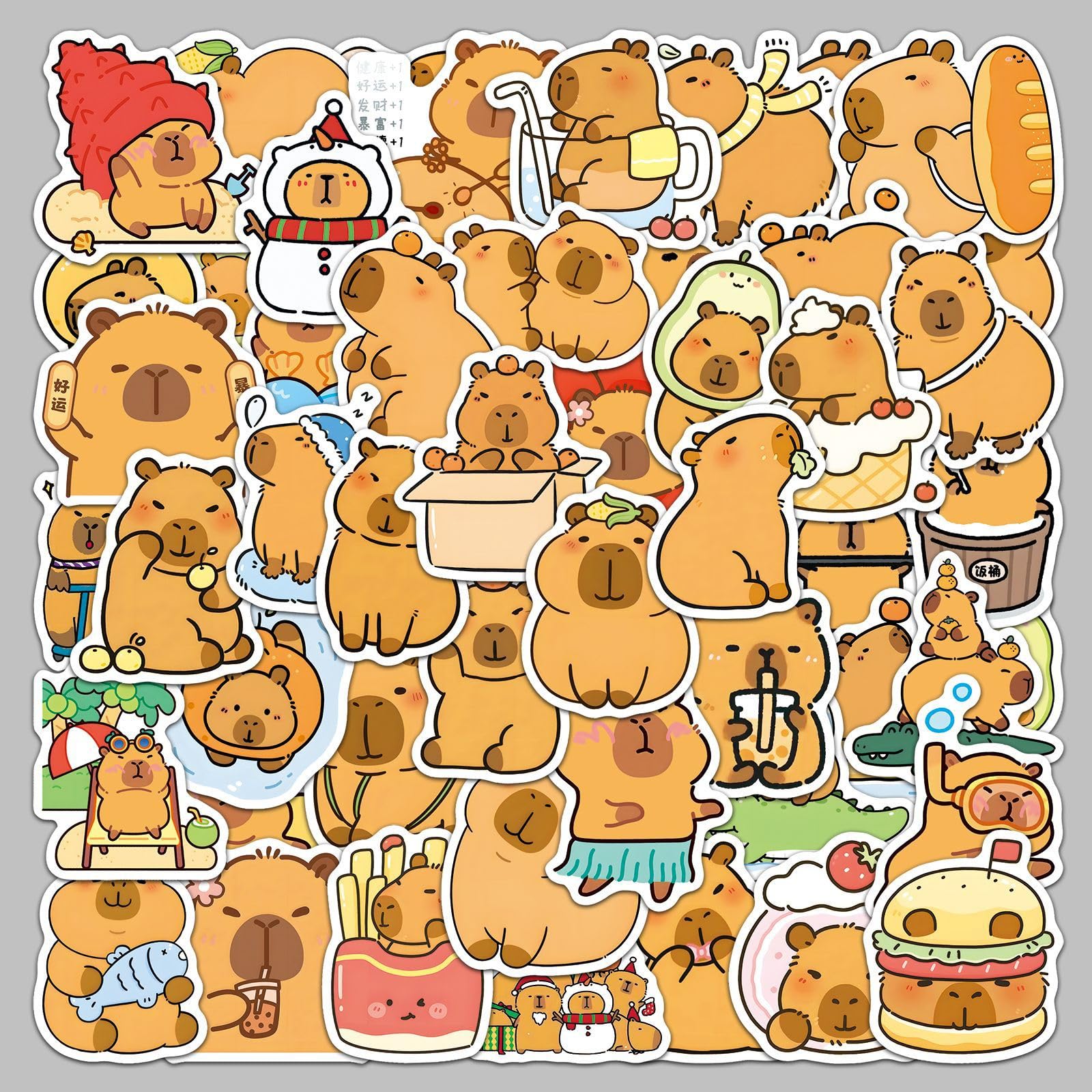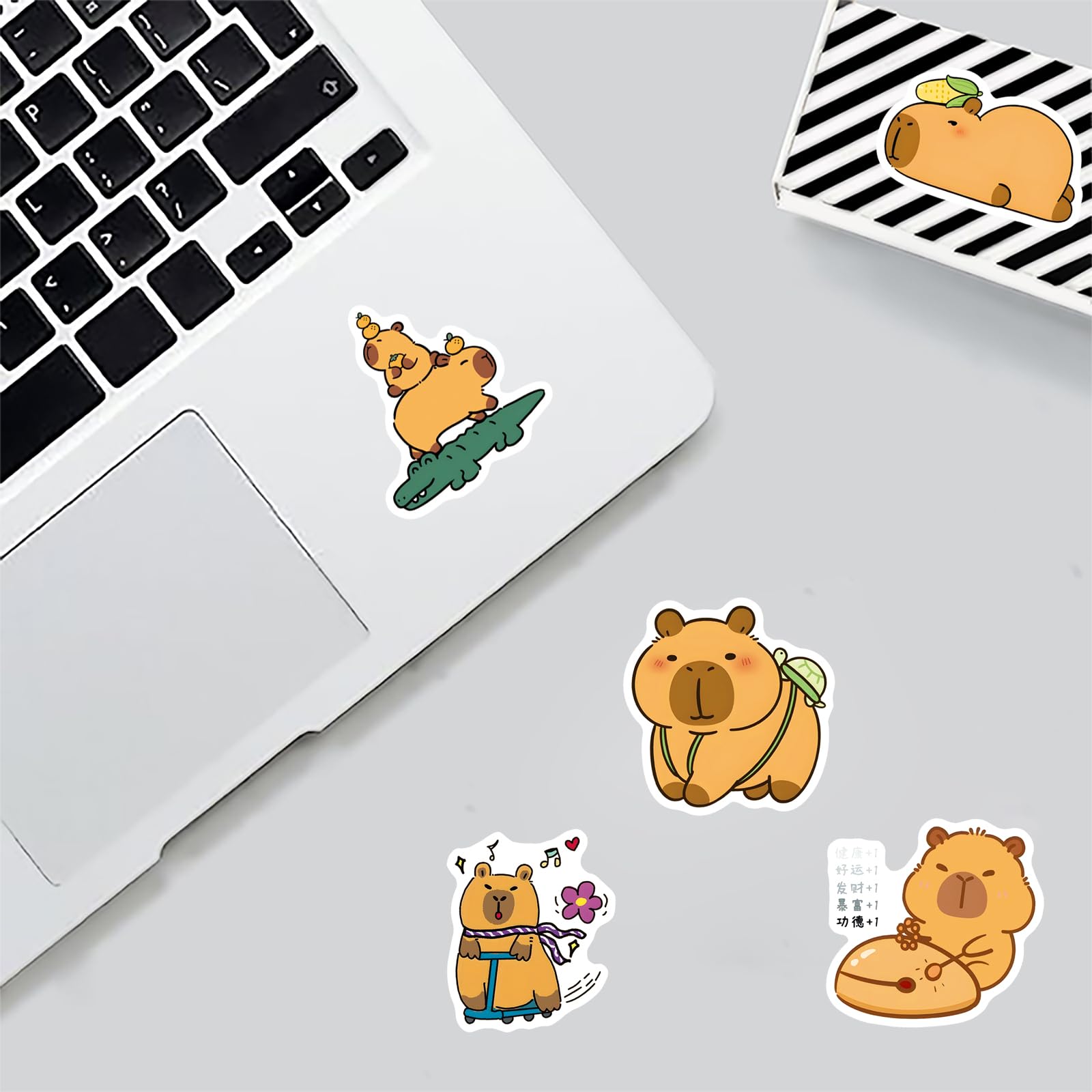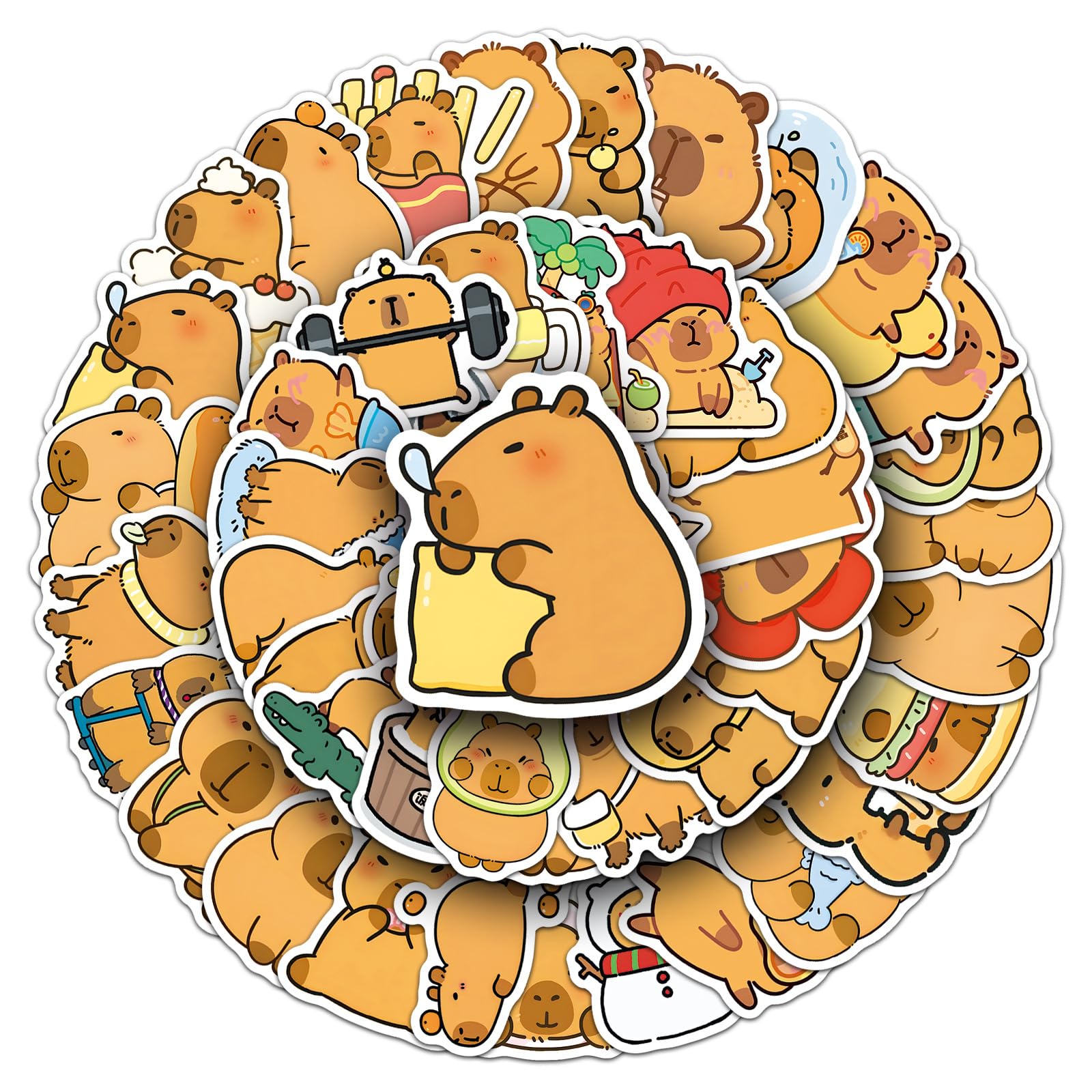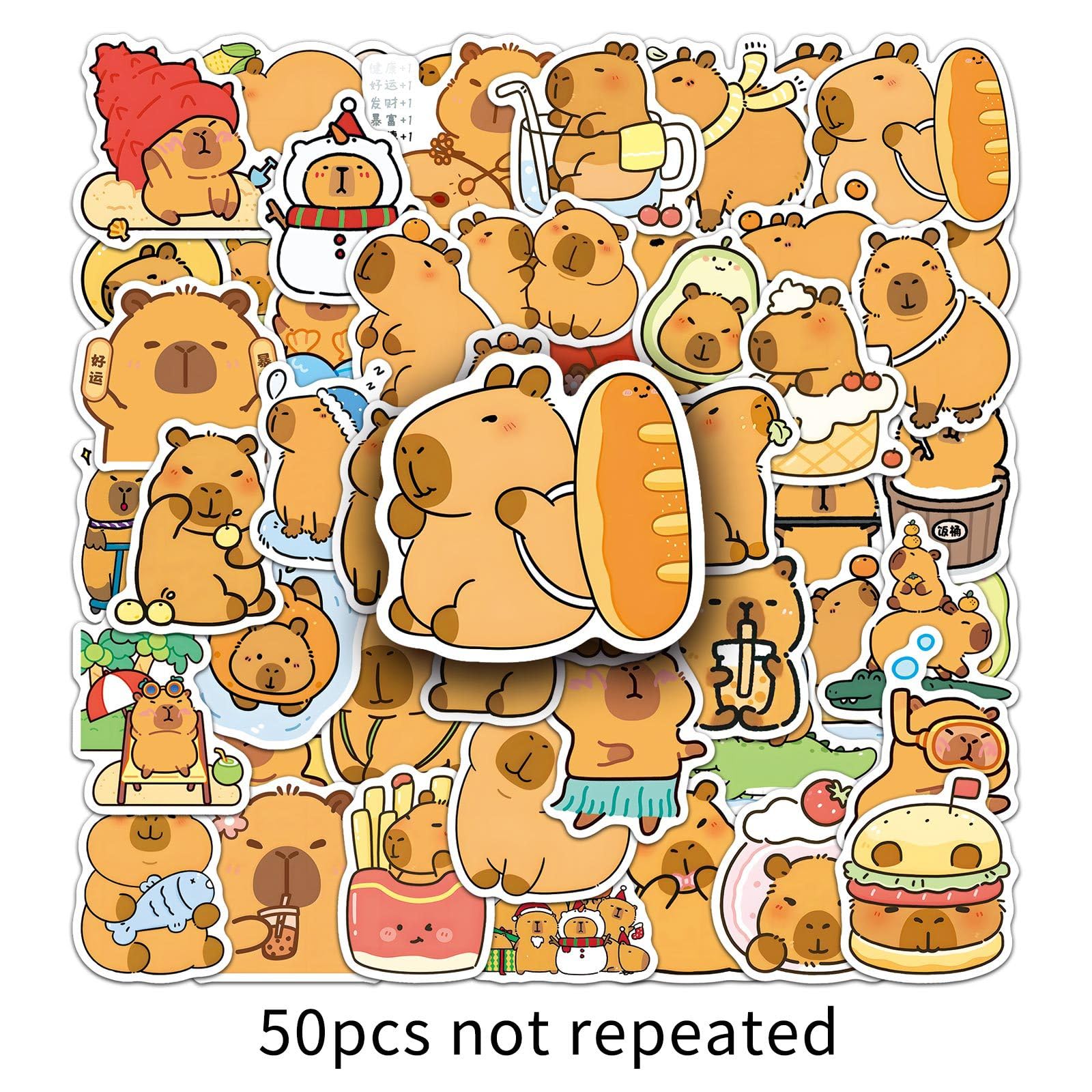 wyyeleswm - A Professional Stickers Store, Providing Cute Stickers and Surprises Product Features: - Theme: Cartoon Animal Capybara Stickers - Quantity: 50 pieces no-duplicate stickers - Size: 1.6-2 inches - Material: high-quality vinyl PVC - Our Advantages: Safe and non-toxic, waterproof and sun protection, high-definition printing and clear, removable and leave no residue, stylish design and durable, sufficient quantity for decoration. Q&A: Q1: What kind of stickers will I receive? A1: You will receive all the stickers in the pictures. 50pcs cute Capybara stickers. No random delivery and no repetition. Q2: How to use the stickers? A2: Uncover adhesive on the back and use directly. These vinyl stickers are easy to stick repeatedly or peel off. More importantly, no residue is left. Satisfactory Service: We believe these wonderful stickers will satisfied you, but if any problem happens or you need any help, kindly contact with us, we will try our best to solve it. So feel free to order this pack of stickers.