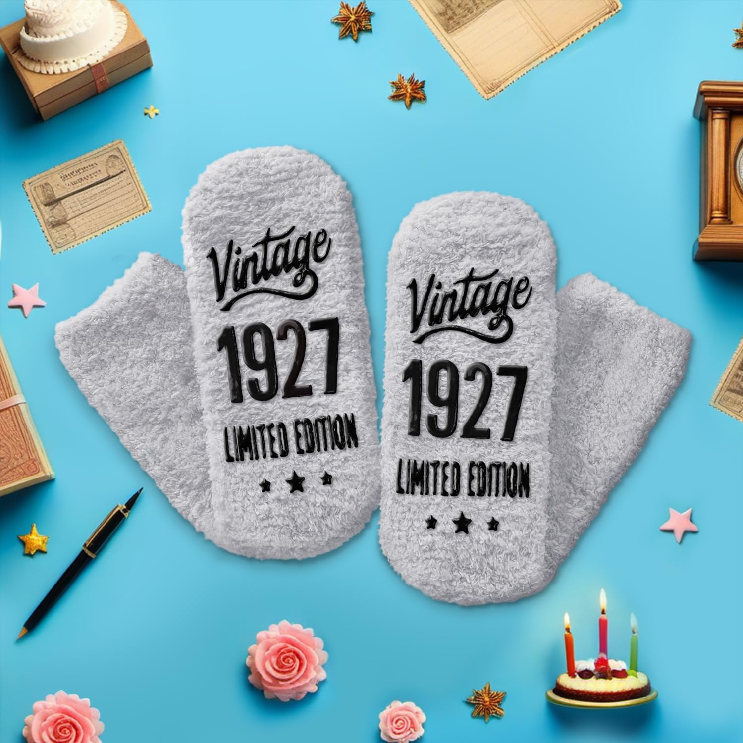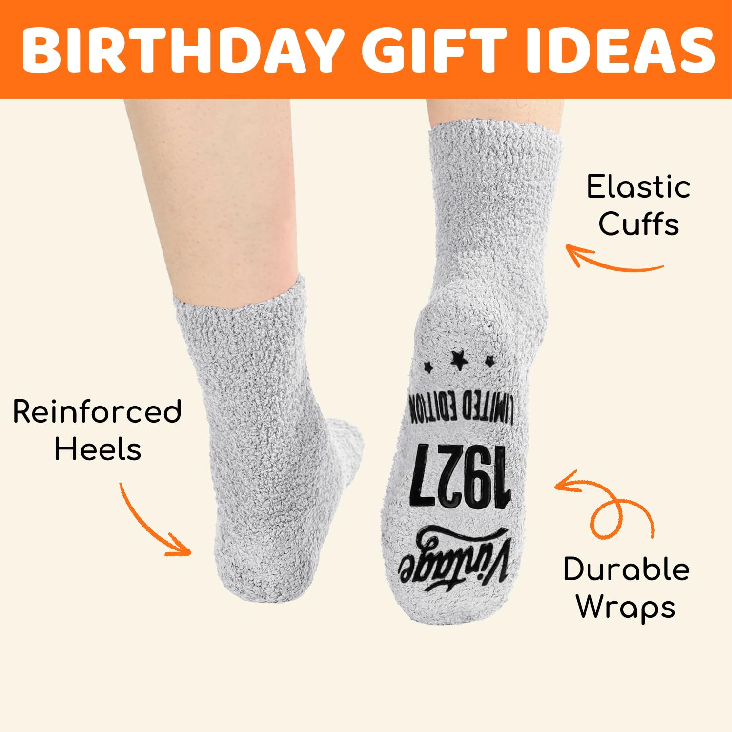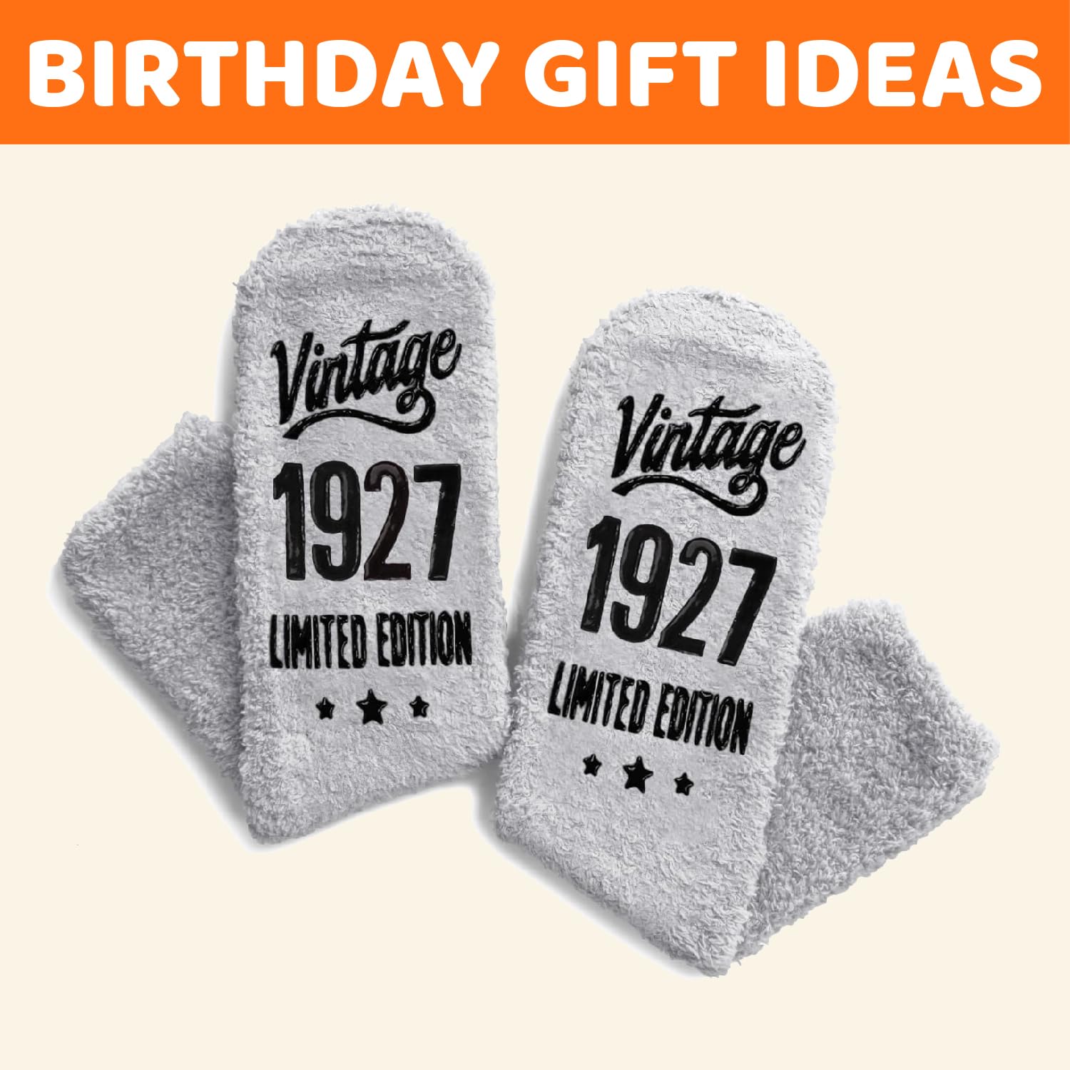 1927 BIRTHDAY GIFTS: Give him this thoughtful 99th birthday gift to remind him of how special he is. He will smile when he sees the words “Vintage 1927 LIMITED EDITION.” Practical and fun, these birthday socks make a great gift for anyone born in 1927.