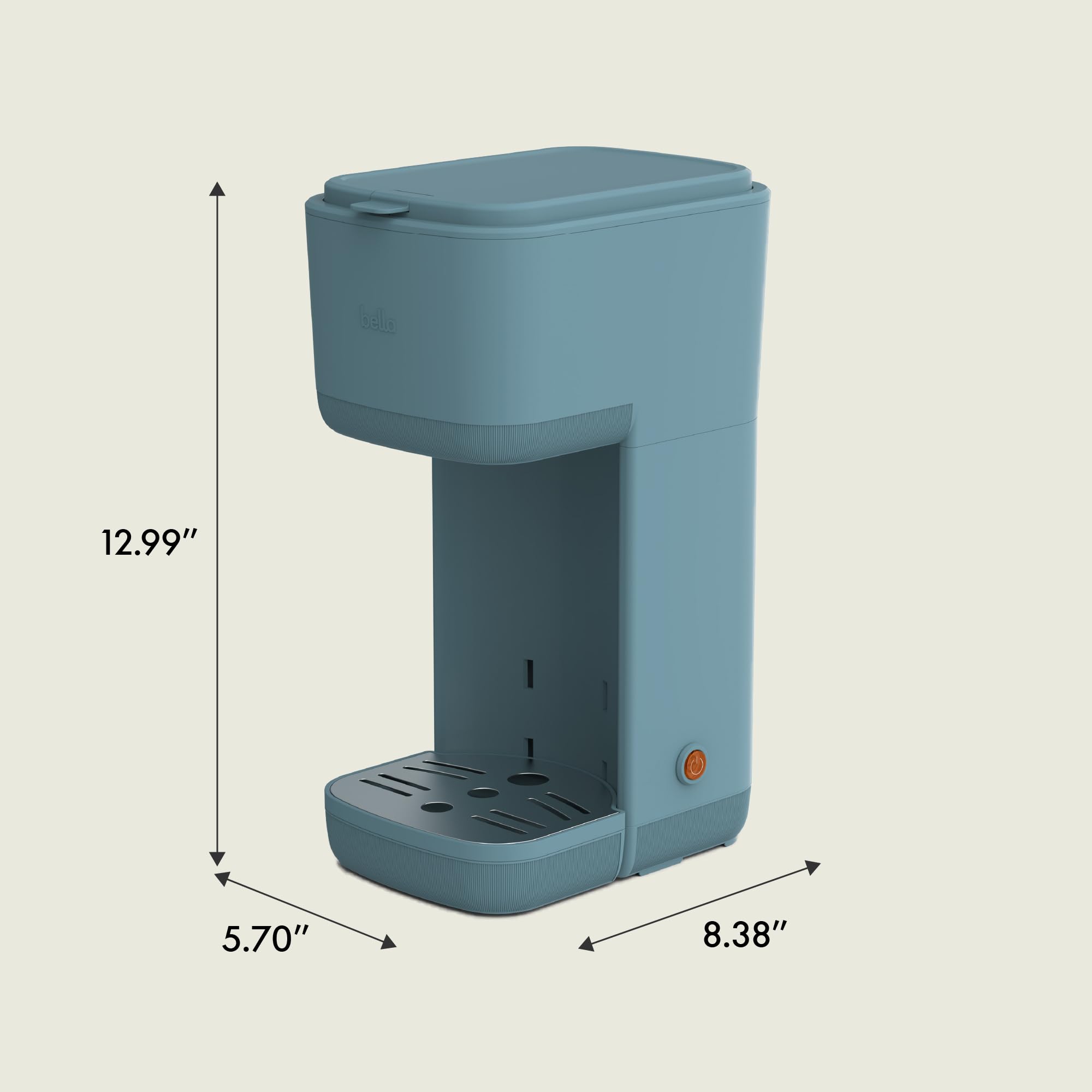 Introducing the bella Single-Serve Coffee Maker, the perfect blend of convenience and style for your morning routine. This compact and powerful 1000-watt machine brews single servings of coffee from 6oz to 14oz, letting you customize your cup just the way you like it. Whether you prefer coffee pods or freshly ground coffee, the bella automatic coffee machine has you covered with a coffee pod adapter and a reusable coffee grounds filter, giving you the flexibility to brew your favorite flavors. Designed with your busy mornings in mind, the adjustable drip tray easily accommodates travel mugs up to 7” tall, so you can brew and go with ease. The slim profile of our barista coffee machine fits neatly on any countertop, and the cord tie feature keeps your space tangle-free and organized. With just one touch, you can enjoy a fresh, hot cup of coffee, while the carefree auto shut-off gives you peace of mind when you’re rushing out the door. Available in four chic bella colors—Oatmilk, Surf, Plum, and Blossom—this portable coffee maker for travel not only delivers on performance but also adds a touch of modern elegance to your kitchen. Whether you’re a coffee enthusiast or just need a quick caffeine fix, the bella single coffee maker makes every brew simple, stylish, and satisfying.