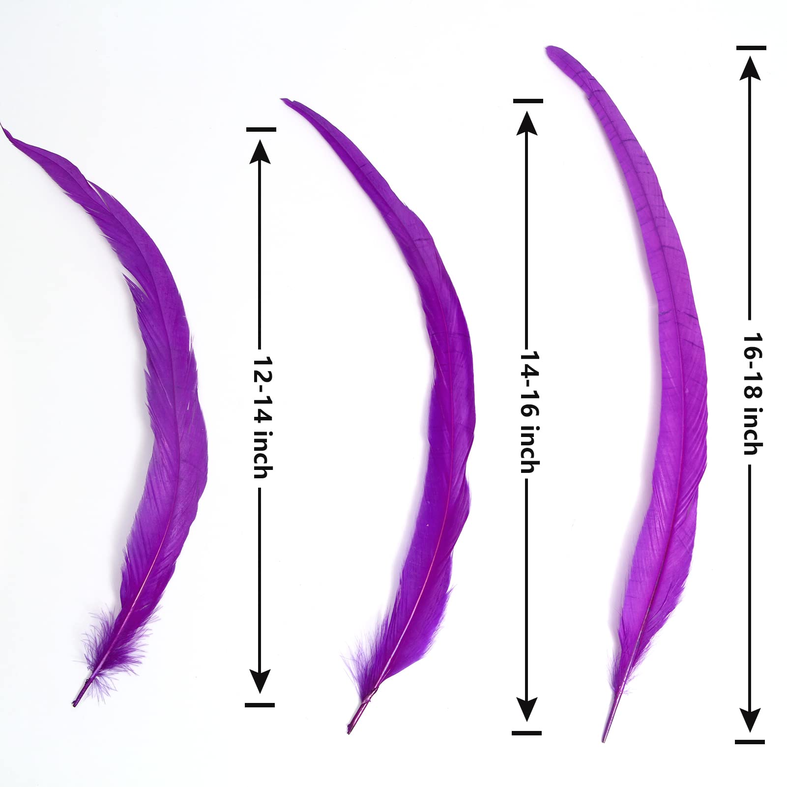 ❤️Feather size: There are four sizes for you to choose,size is divided into 12-14inch (30-35cm),12-14inch(35-40cm),16-18inch(40-45cm).These are real rooster tail feathers, each one is unique and the shape may vary.