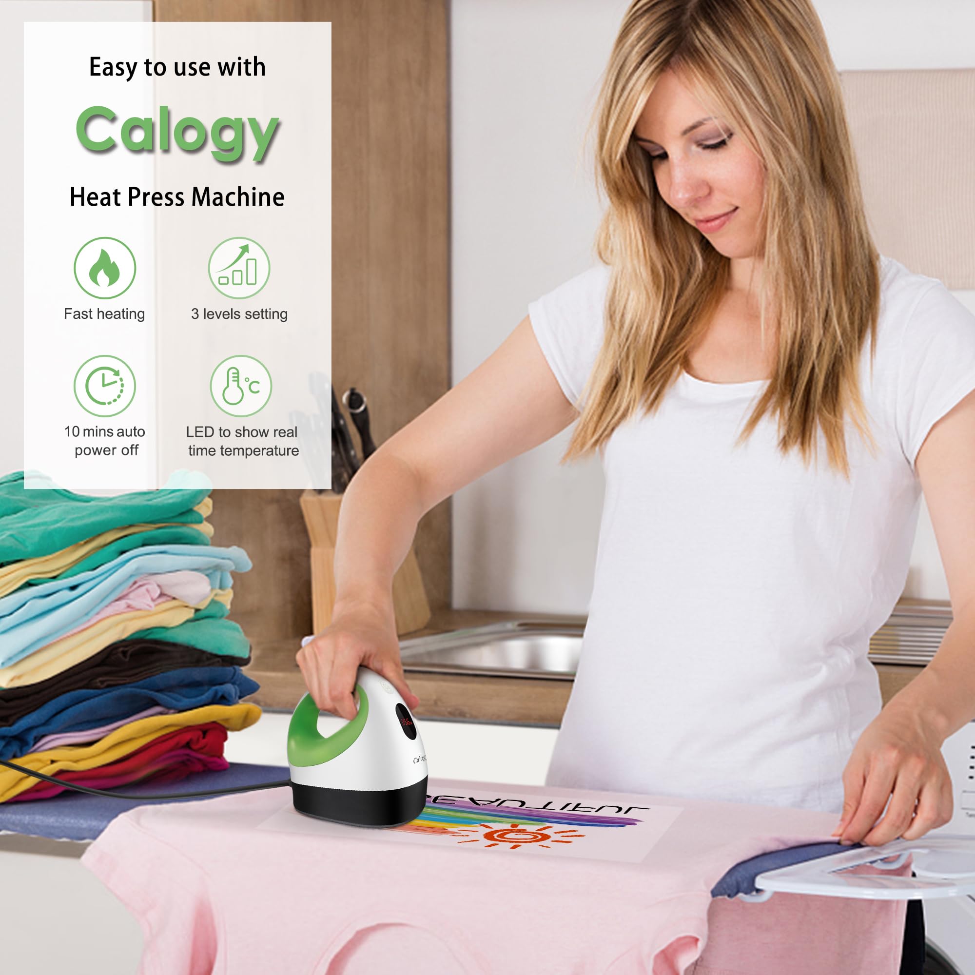 Fast Heating: Once power on, this shirt press machine can heat to 284 ℉ in around 3 mins, from 284 ℉ to 320 ℉, only around 40 S needed, from 320 ℉ to 356 ℉, around 50 S needed (Above datas the initial temp is 84 ℉)