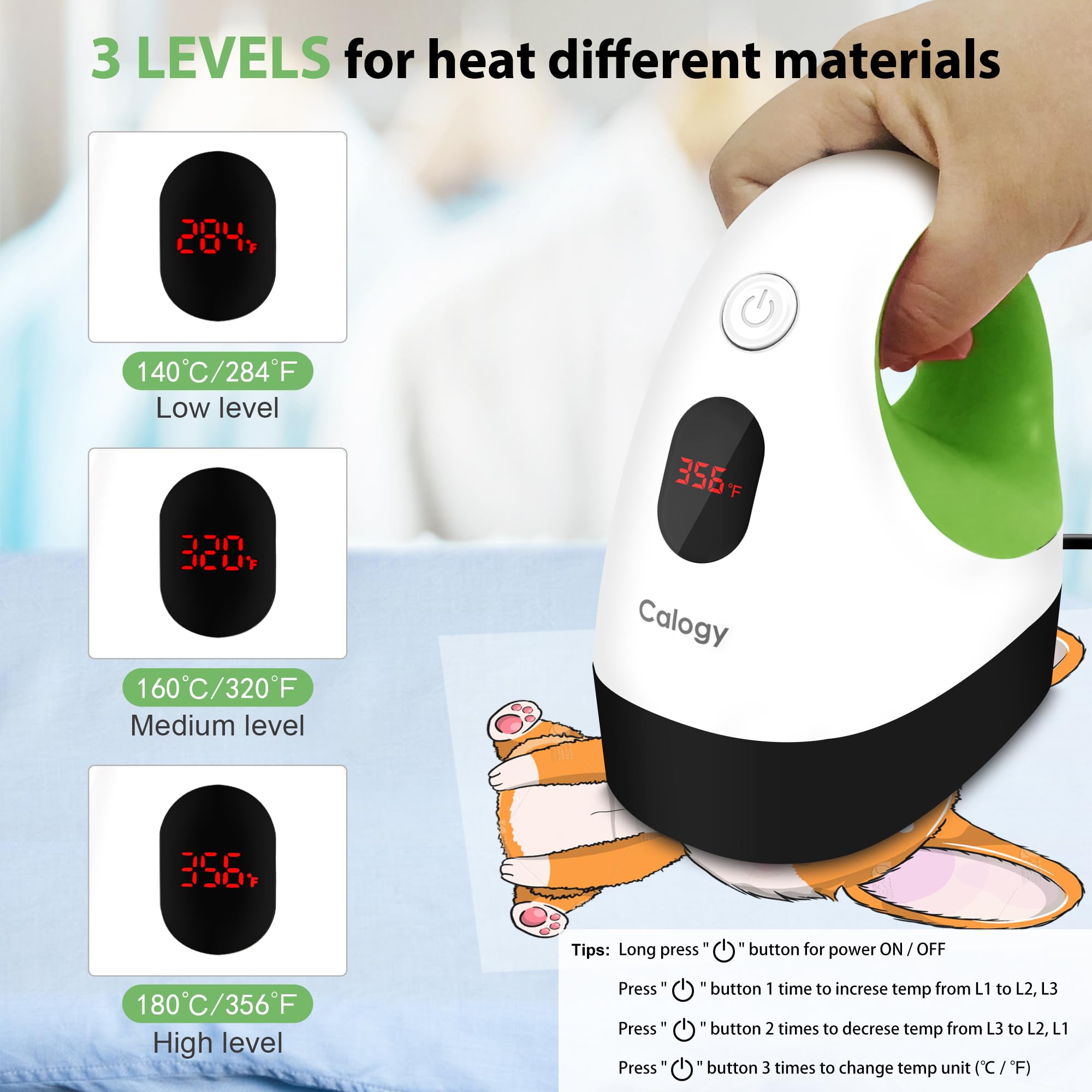 3 Temp Levels:3 levels temps to meet different purpose by this craft iron for crafting; Low temperature: 284 ℉(140 ℃), Medium: 320 ℉(160 ℃), High: 356 ℉(180 ℃)