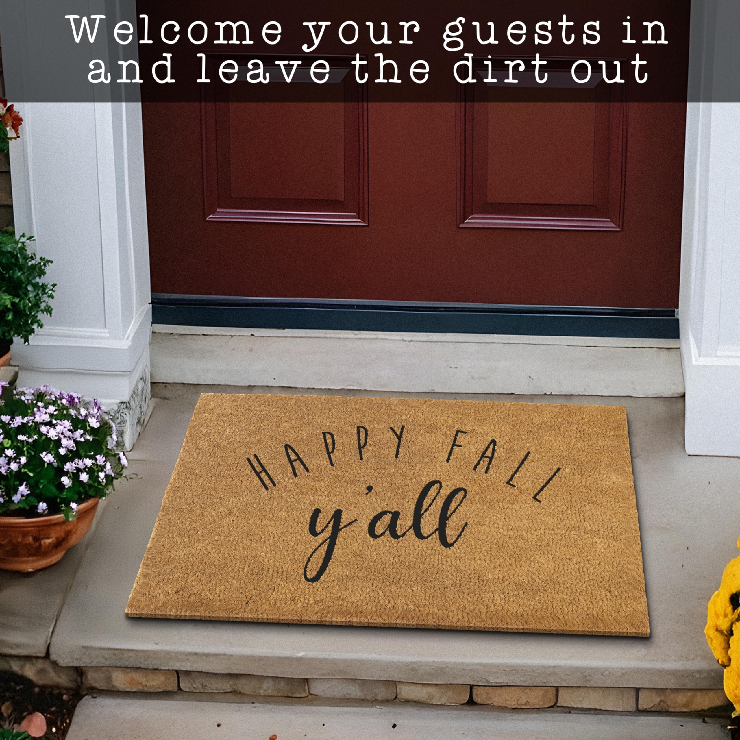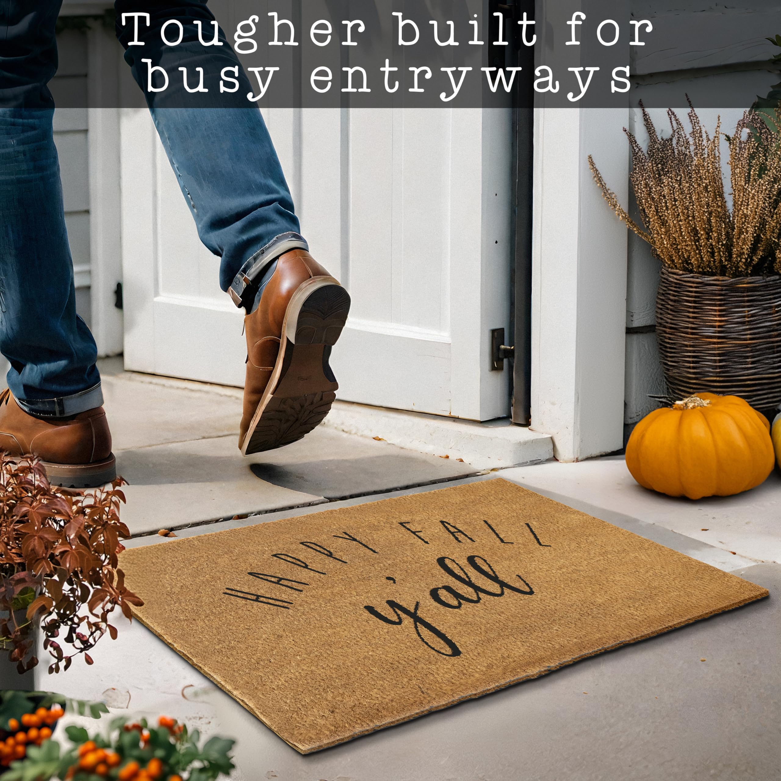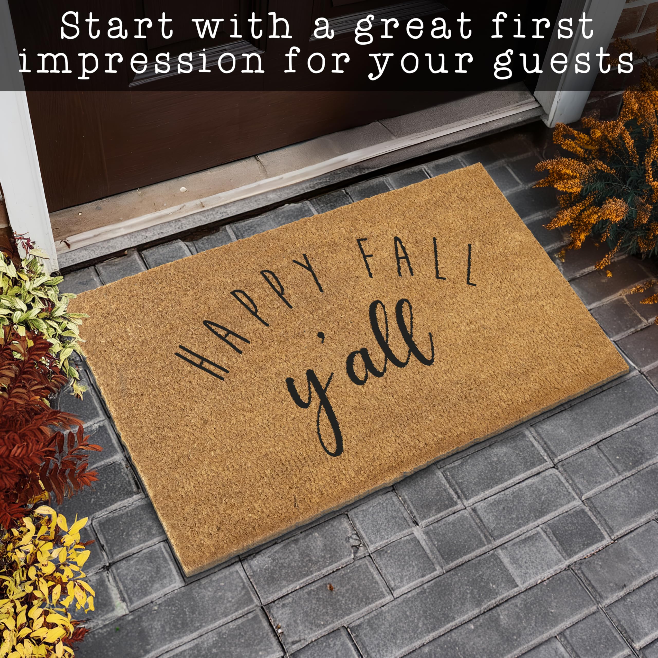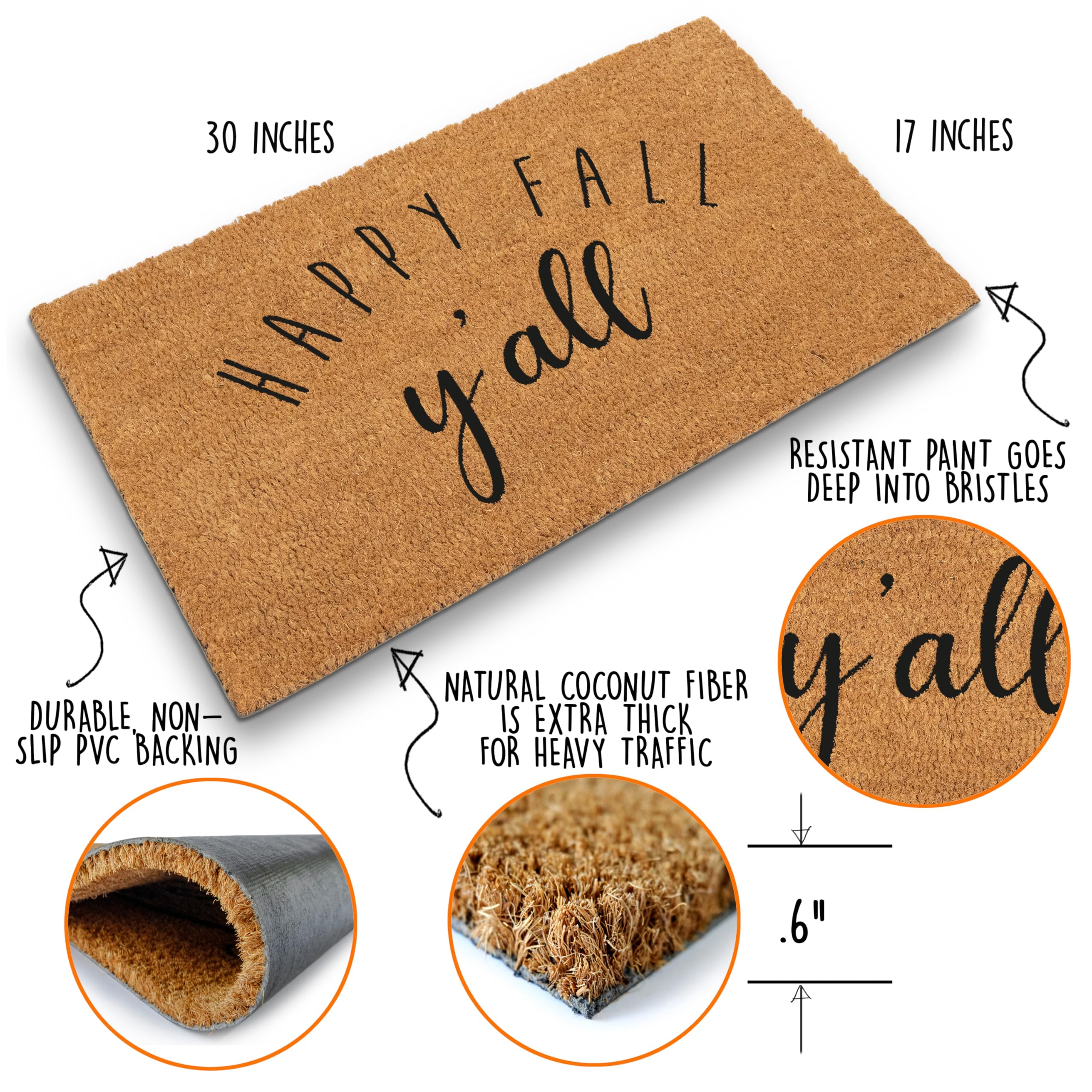 Durability in every fiber - Tightly woven coco fibers .6 inch in height make our happy fall yall welcome mat durable and a long-lasting fall outdoor rug