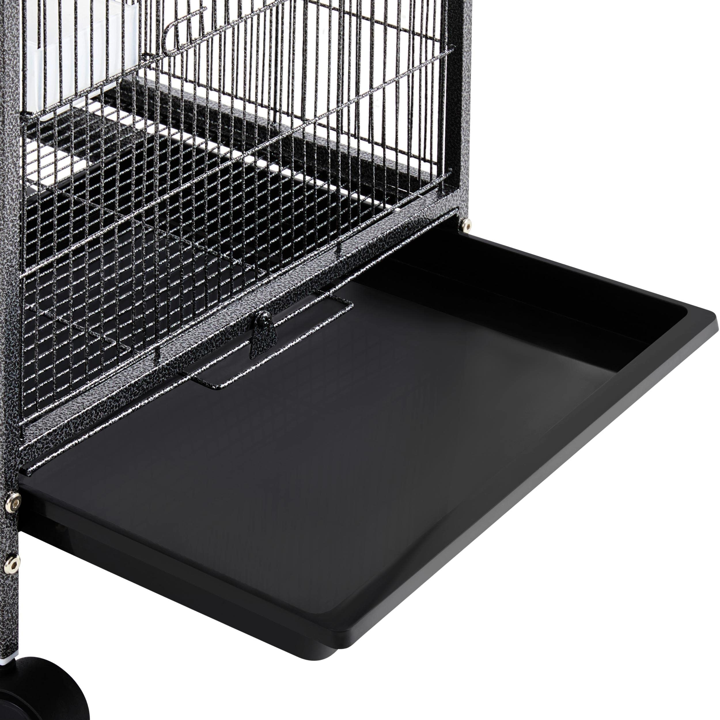 Hassle-Free Maneuverability: Thanks to the four 360-degree wheels (two with locks), you can move this open-top bird cage freely around the house to clean or to give your birds a sunbath and lock it in place when needed. The cage can be used with or without wheels