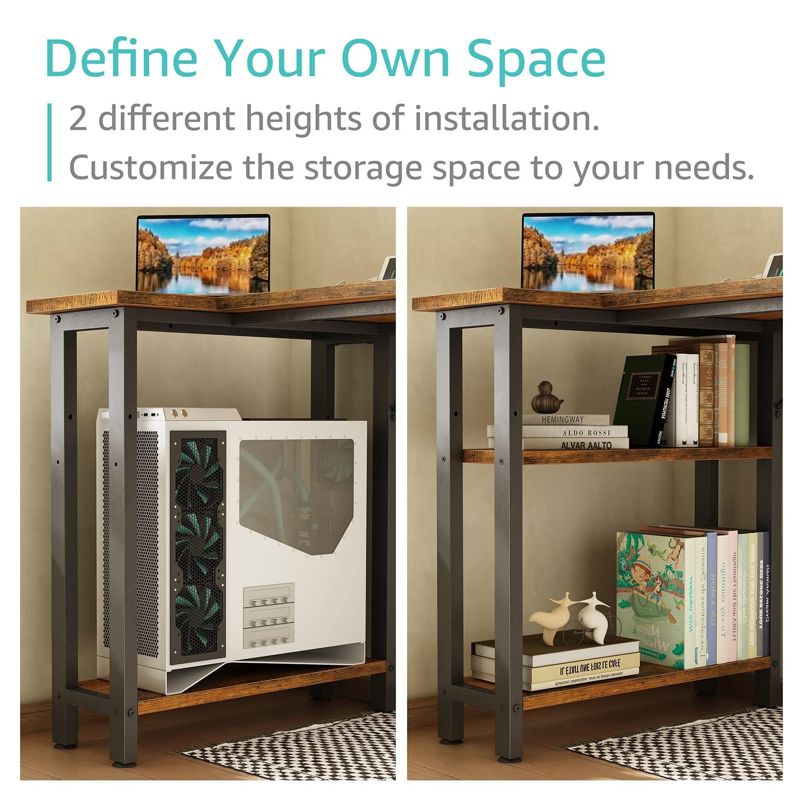Modern Simple Style Design: Computer desk with 2 storage shelves, you can try this two installation methods (left or right), and have two different heights of installation, you can customize the storage space to your needs. This splice board desk is made of thick P2 particle wood board with scratch-resistant, anti-collision and waterproof, protect home office desk surface from daily wear and tear.