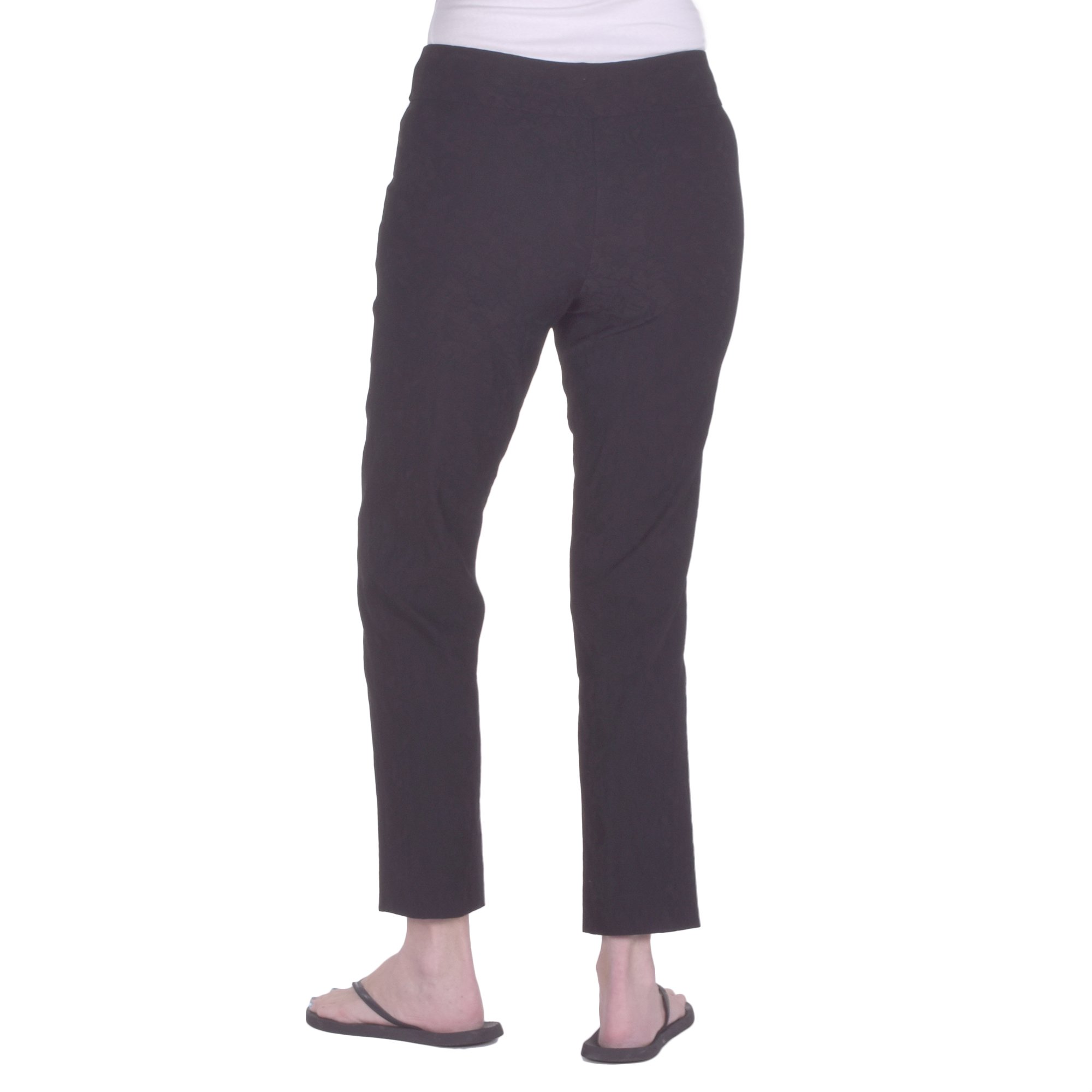 Dressy figure-flattering pant boasts a smooth blend of nylon and rayon with spandex for a smidgen of stretch.