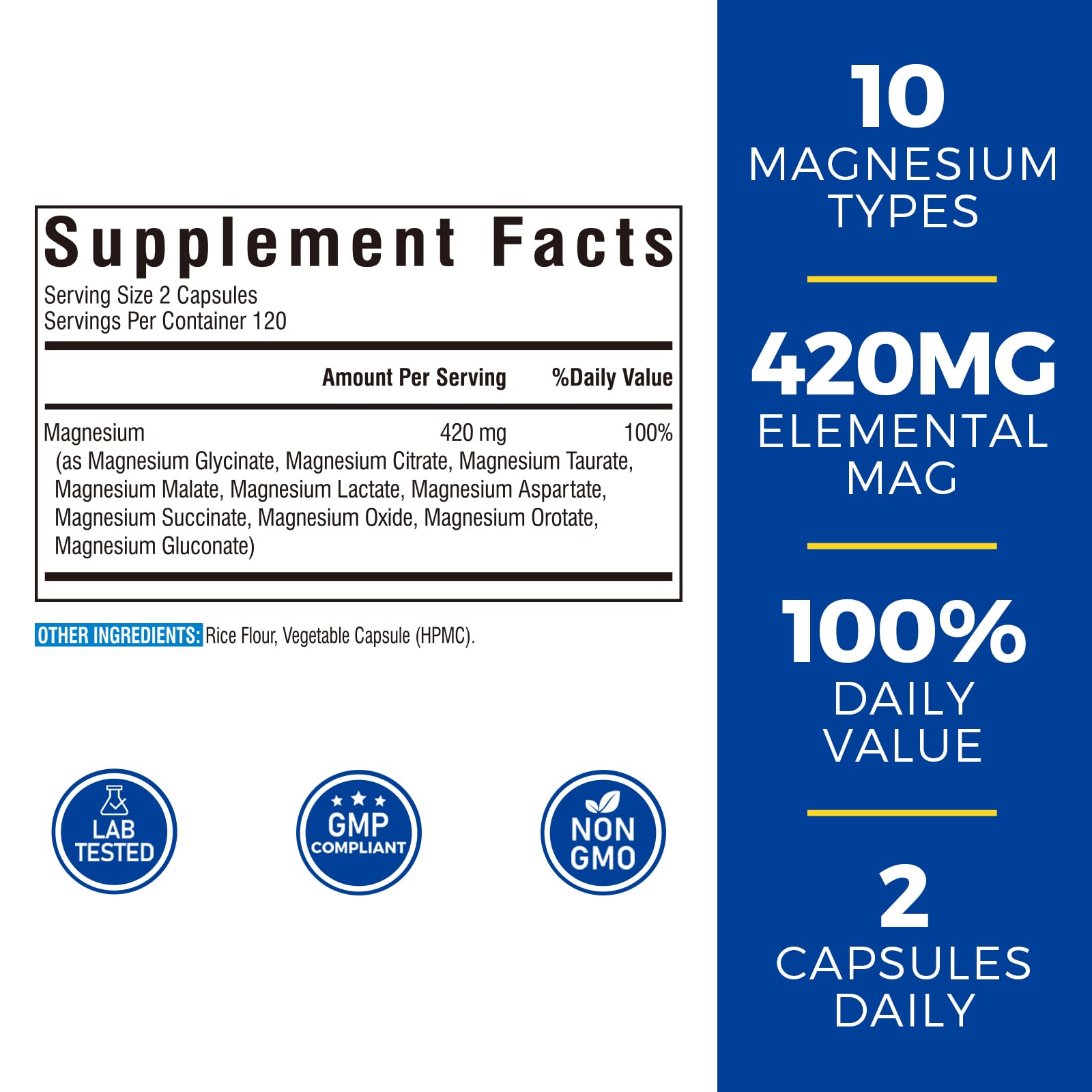 Comprehensive 10-Type Magnesium Blend: Say goodbye to magnesium supplements only offering a single magnesium compound and simplify your daily health routine! Our all-in-one formula contains 10 full spectrum types of magnesium in each capsule to provide all the magnesium you need in one supplement, making it a more convenient and cost-friendly choice