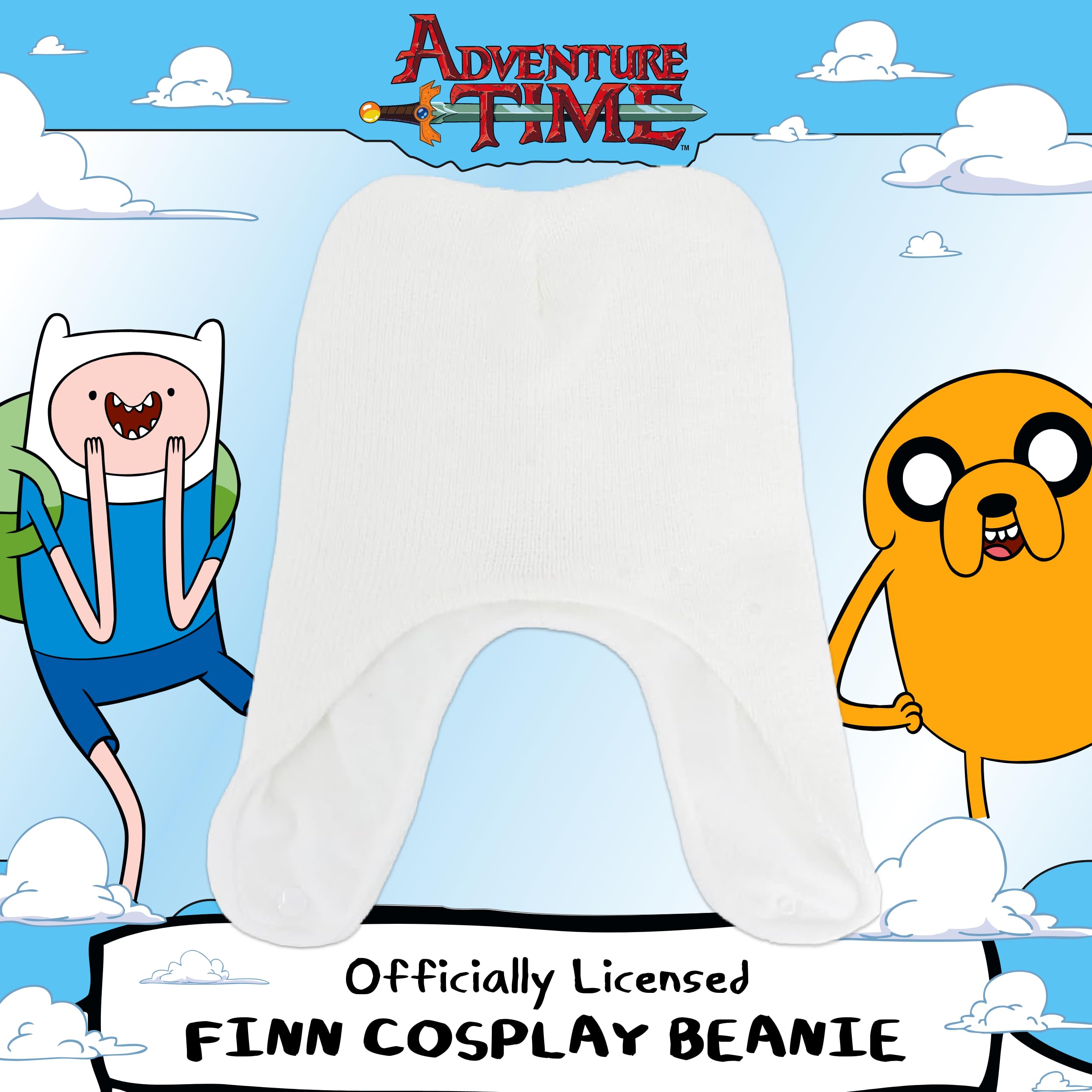 ADVENTURE TIME BEANIE CAP: This cute and stylish Finn the Human Adventure Time character hat features decorative ears and a snap closure to keep the beanie secure on your head; perfect for cosplay, Halloween costume parties, and much more