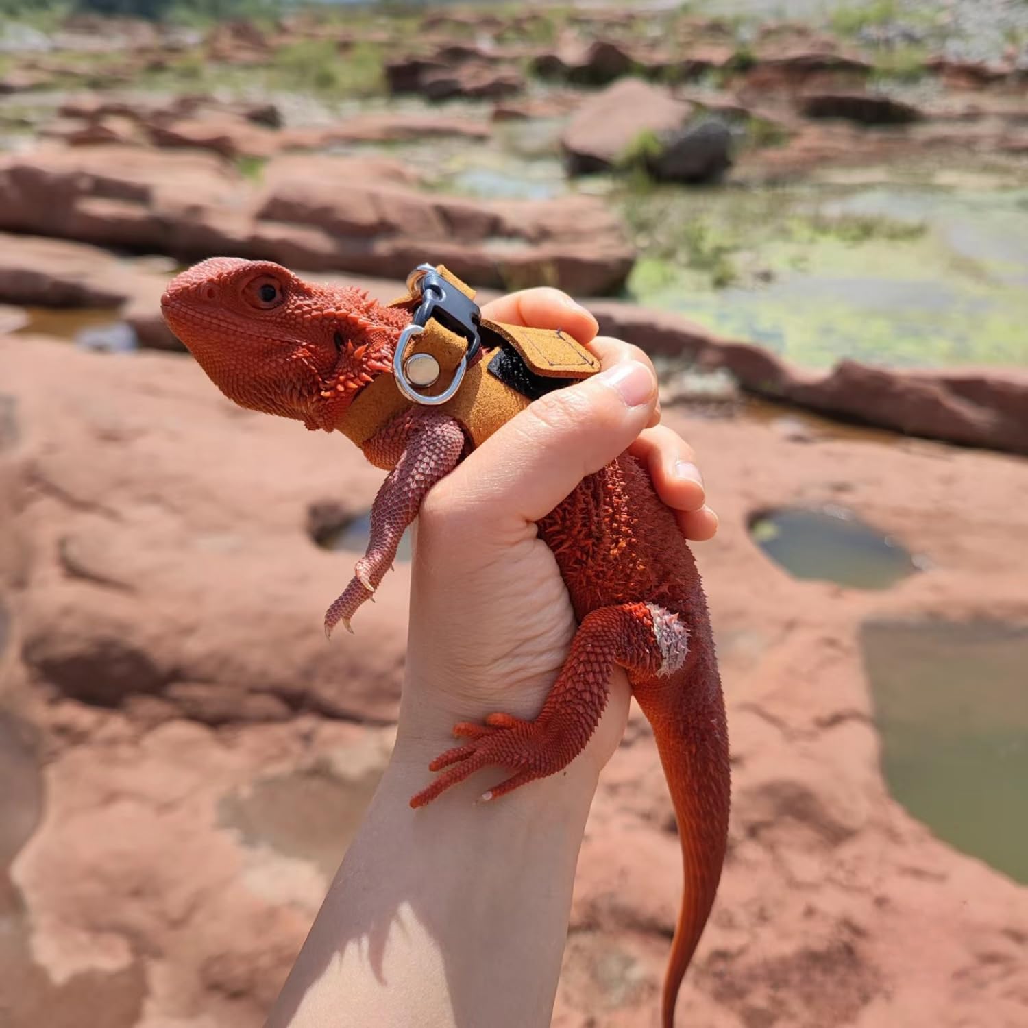 Lizard Walking Leash: Comes with a 6.5 ft nylon leash with 360° rust-proof swivel hook.The long leash offers ample length and freedom for your bearded dragon to explore their surroundings. You can bring your lizard outside with no concerns. The metal Clasp at the front can be easily attached and detached as well