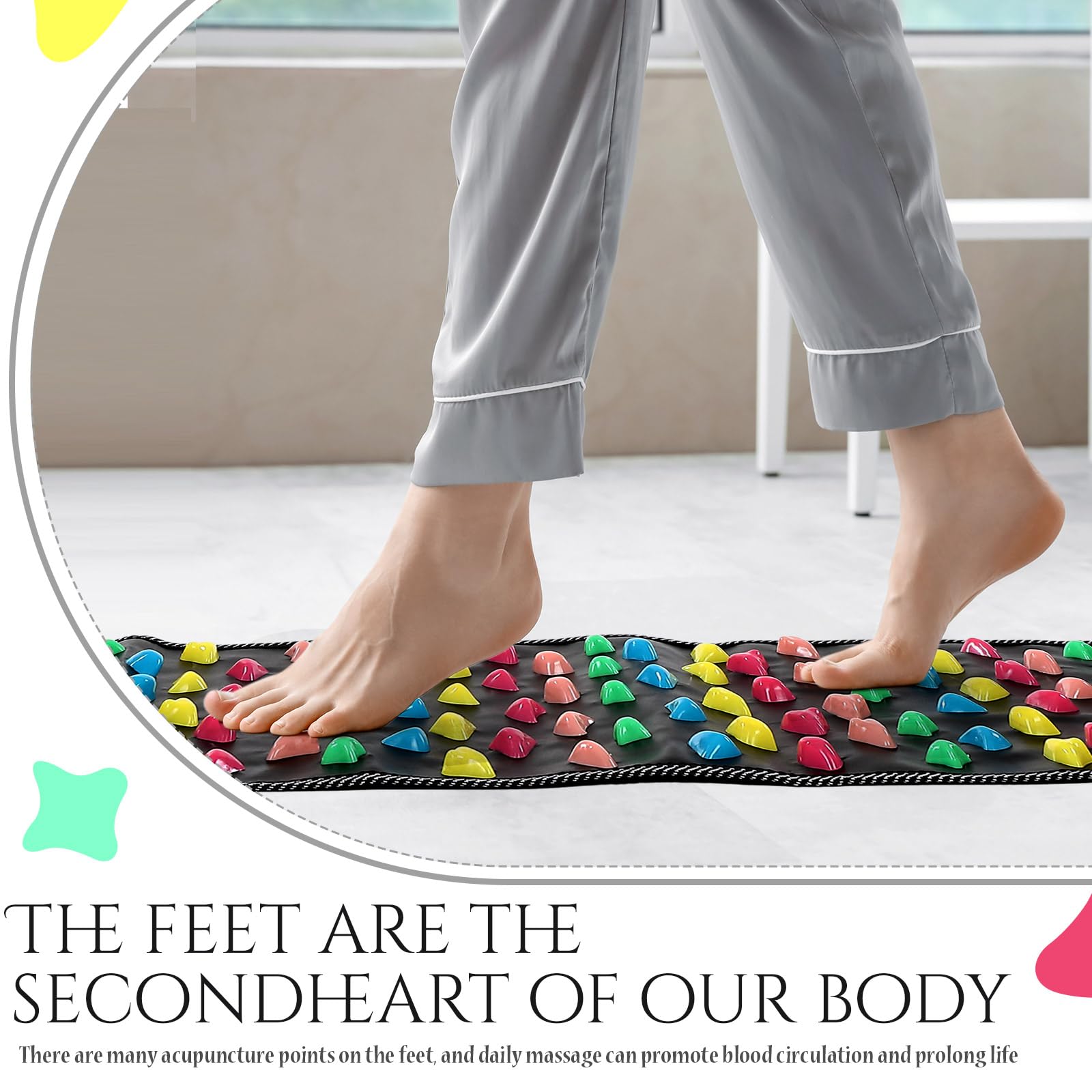 Foot Massage Mat: you will receive 1 piece of foot acupressure mat, which has a special part for massaging the soles of the feet, and you can stand on it to massage your feet, besides, there is also designed with a walking mat that you can walk directly on the mat, very practical for your everyday use