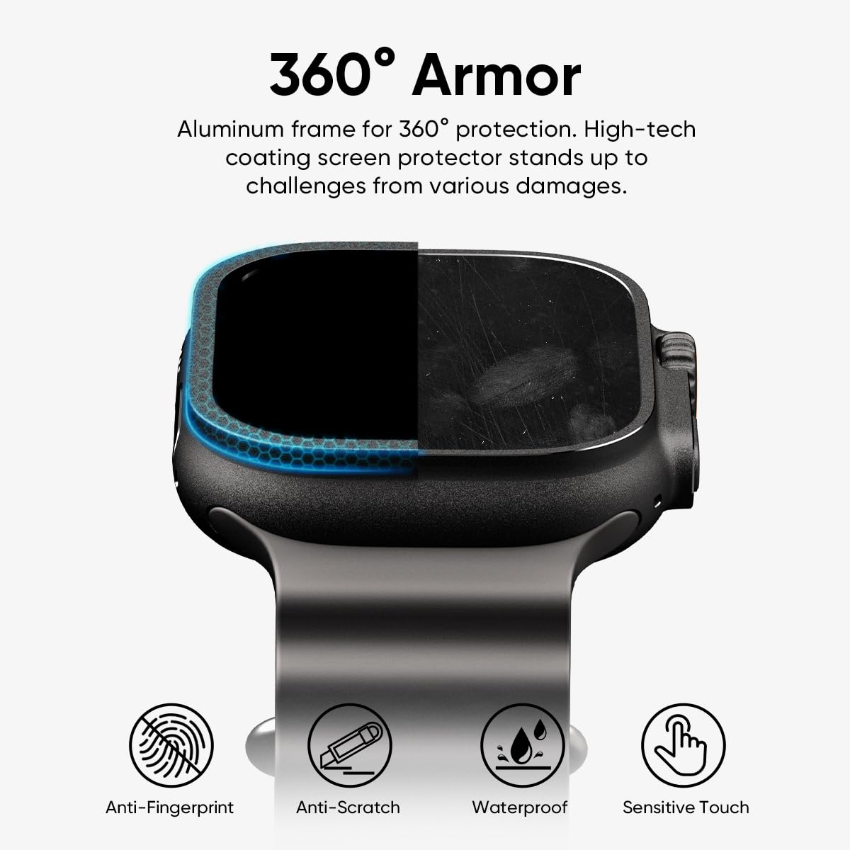 【Double Defense for Your Apple Watch Ultra】: Color-matched aluminum frame reflects your apple watch’s beauty, scratch-proof tempered glass protect the screen from impacts and scratches.