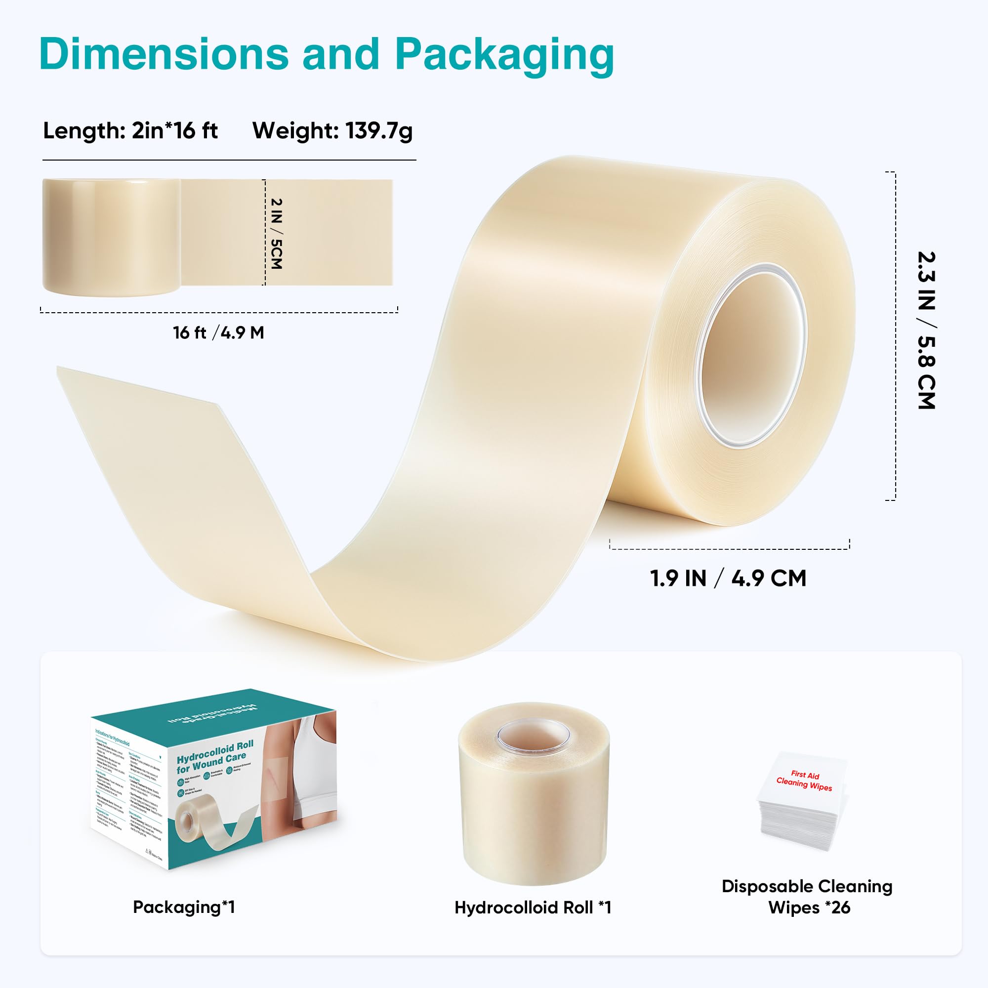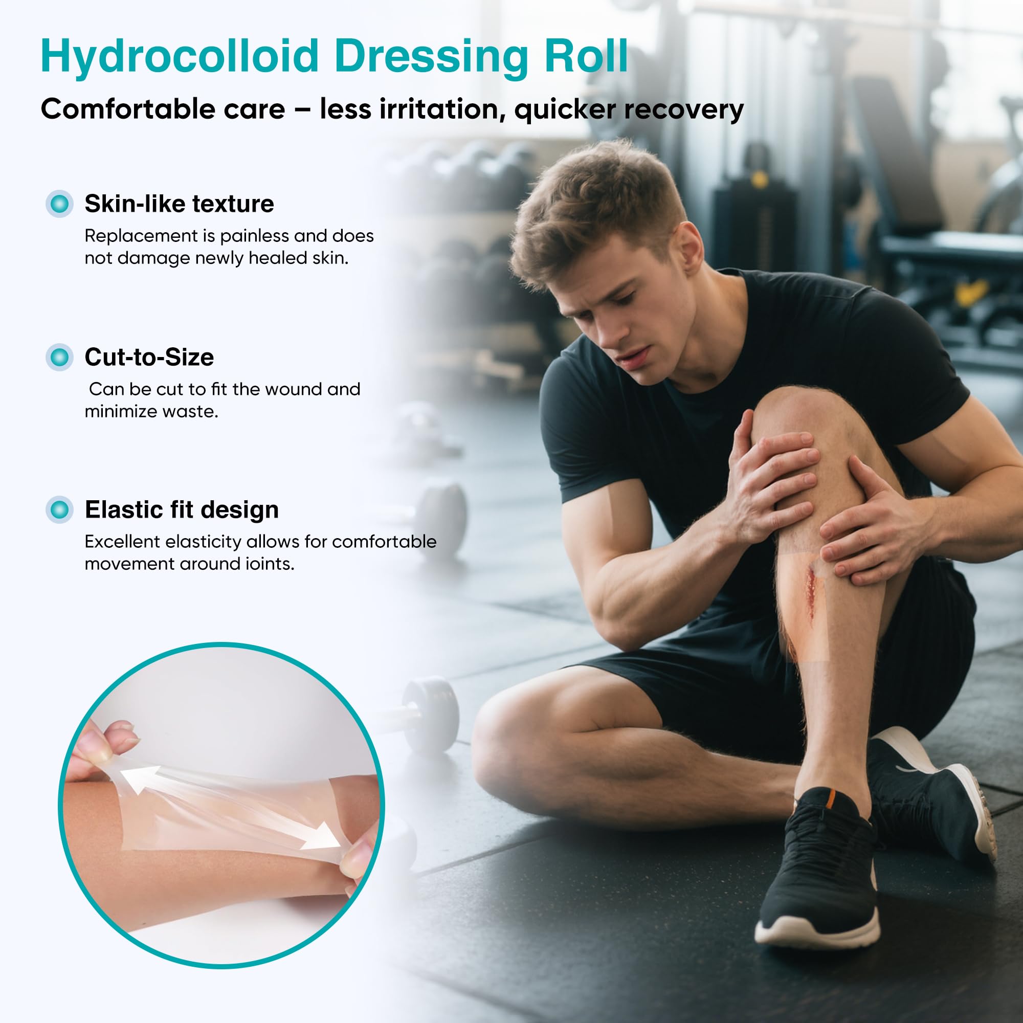 Skin-Friendly, Waterproof & Breathable: Made with hypoallergenic, latex-free materials, the Hydrocolloid Dressing Roll is gentle on sensitive skin. The outer layer features a waterproof yet breathable film, helping block water and dirt during activities such as swimming, showering, or exercise—while still allowing the skin to breathe naturally
